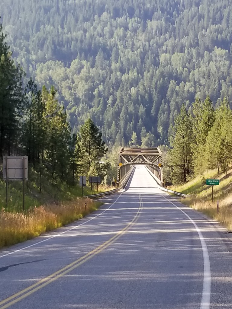 The first part of today’s travel was to cross the Columbia River. Unlike prior bridges, there was no pedestrian walkway. Instead, there was a narrow catwalk with a low barrier between me and the vehicles and a waist high railing over the river.