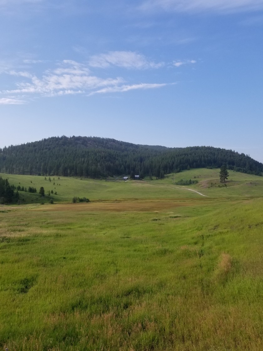 Out of the forested Cougar Creek valley I climbed to higher grassland country. There was a gorgeous old ranch there.