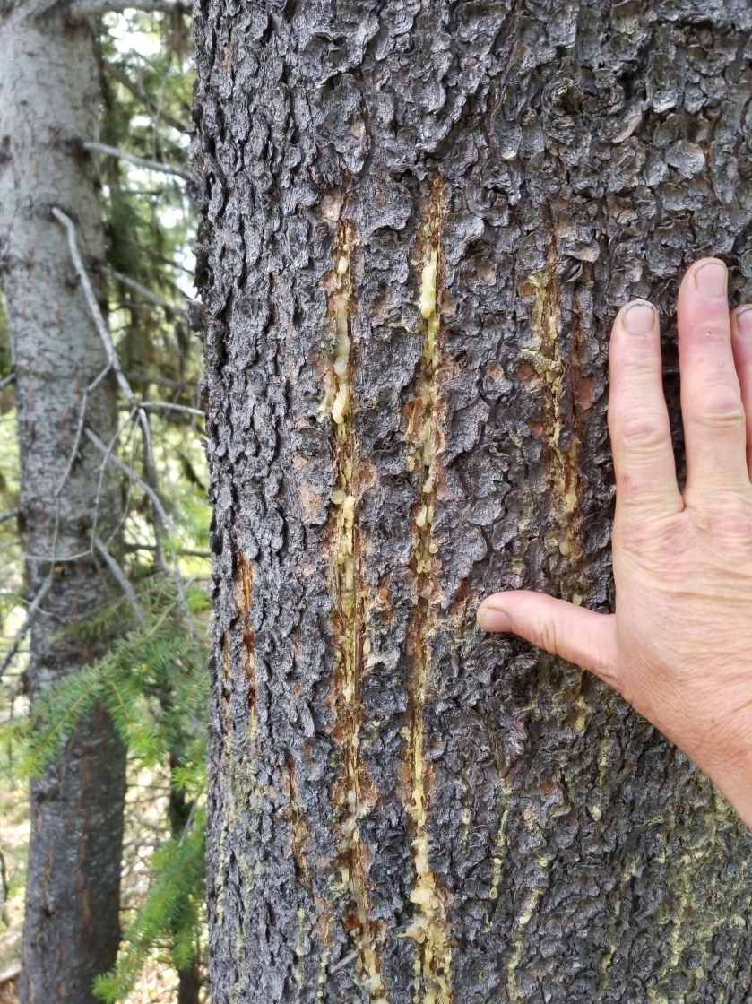 I found what I think was a boundary tree. To my untrained eye, it seemed like an animal about the size of a cougar had scratched a tree about six feet high to mark its territory.