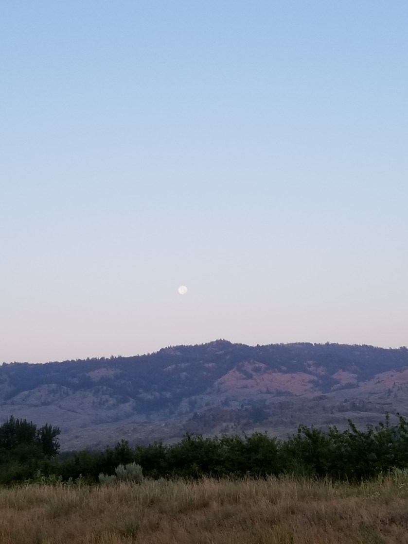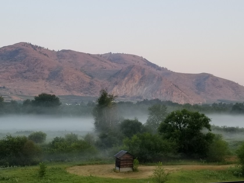 I road walked in to Oroville. Nice fog clung low over the river, the sun slowly rose over the mountains to the east chasing the full moon as it sank over the western hills.