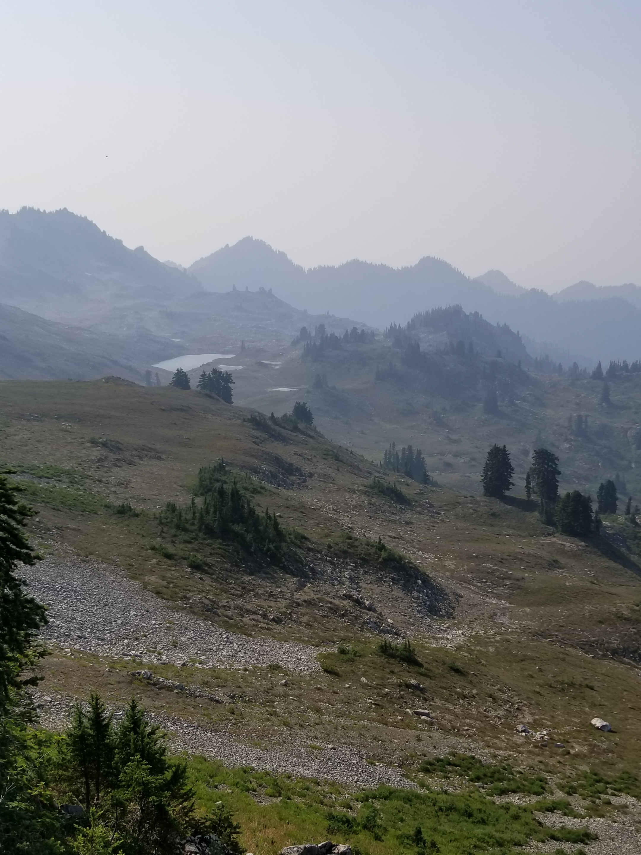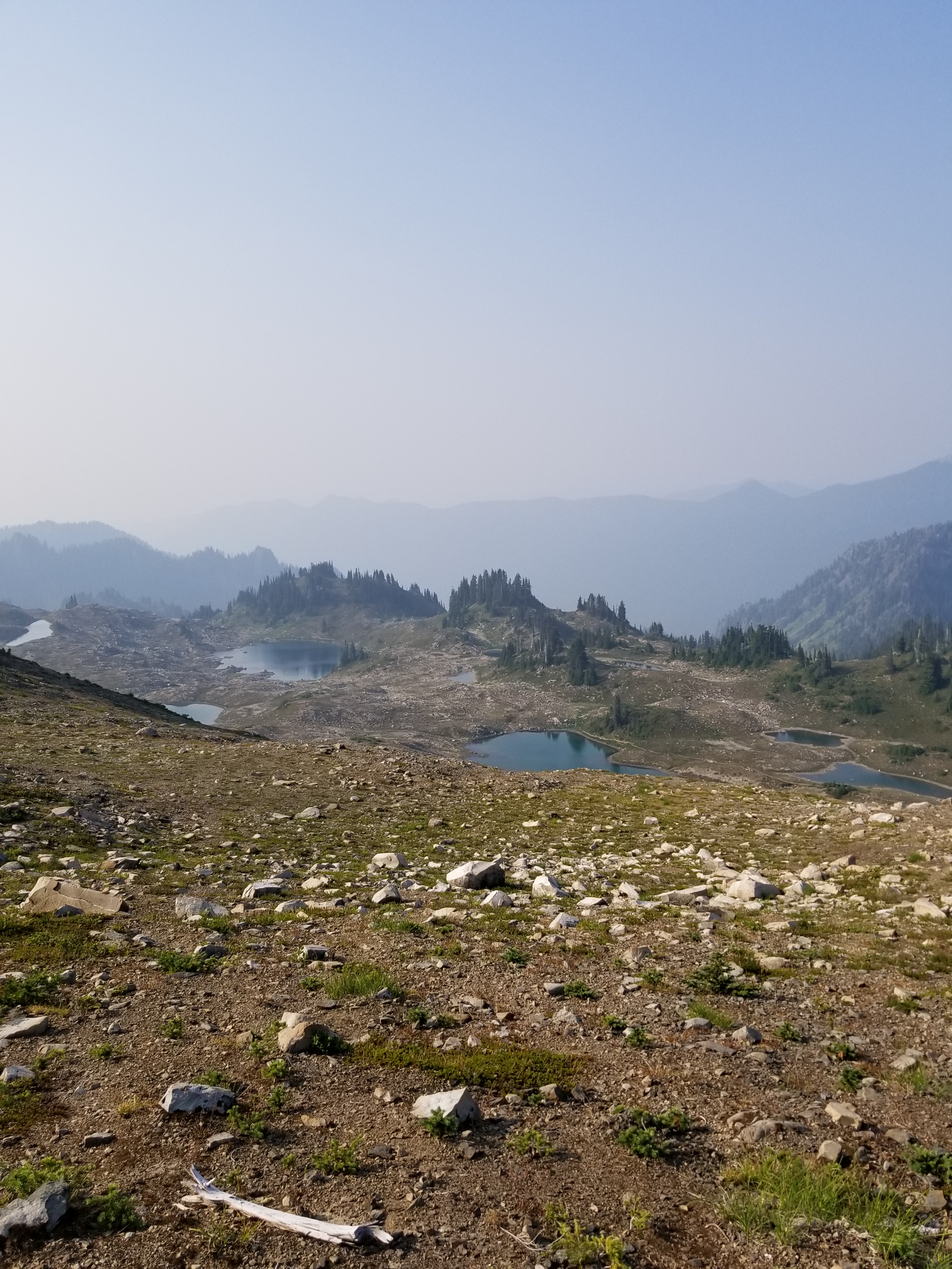 Despite the smoke, I loved the views down in to some of the Seven Lake Basin. I was naturally drawn to the sardonically named Lake Number 8. As the afternoon turned to evening, the crowds evaporated and I enjoyed the ridge walking.