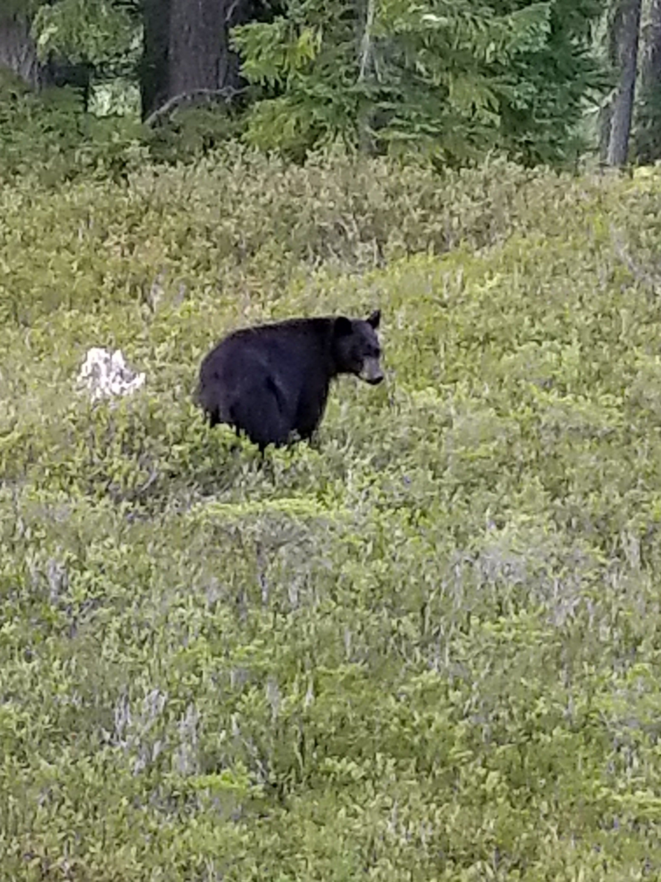 Next, there was a smaller black bear downhill. I had to talk for about 5 minutes before it looked up from its huckleberries. It gave me an annoyed look.