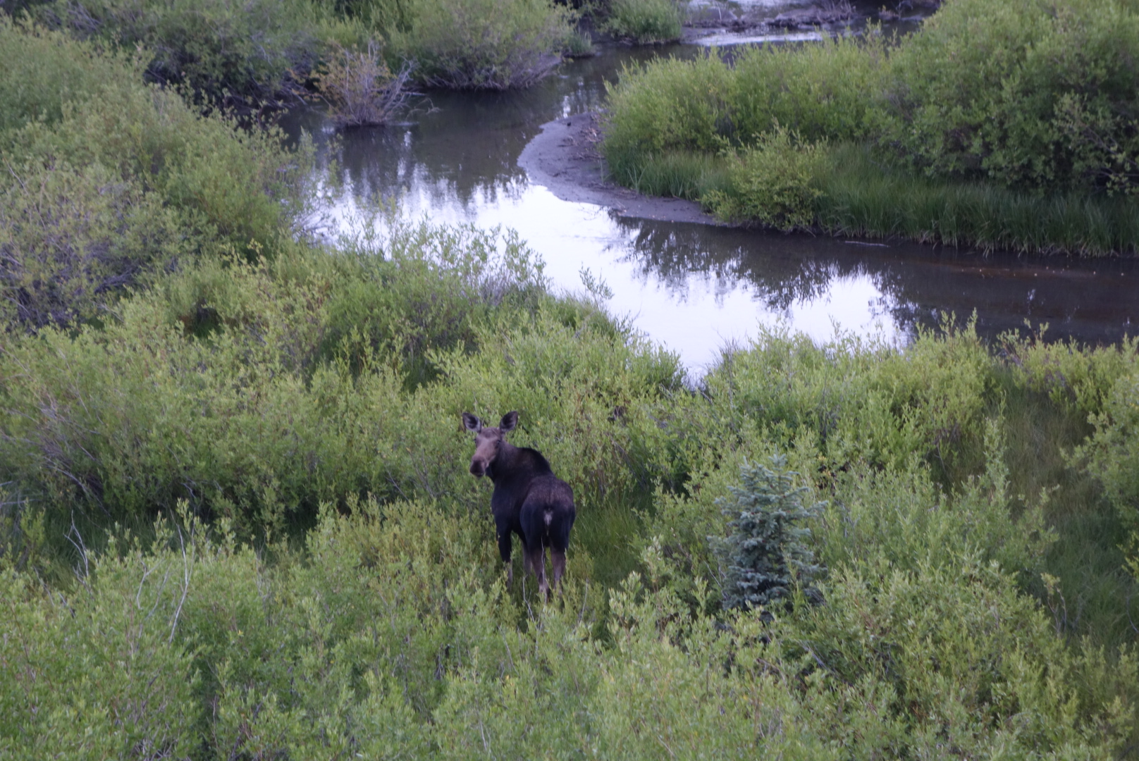 No Internet or cell signal.  I started to update blog posts since I would soon be near power.  However, in the warm morning sun, I  dozed off.  I awoke to a large bull elk moving rapidly uphill through the cattle field.  The steers were making noise, but it was unclear whether they were cheers or jeers as the elk easily jumped the barbed wire fence forming the prison around the cattle.