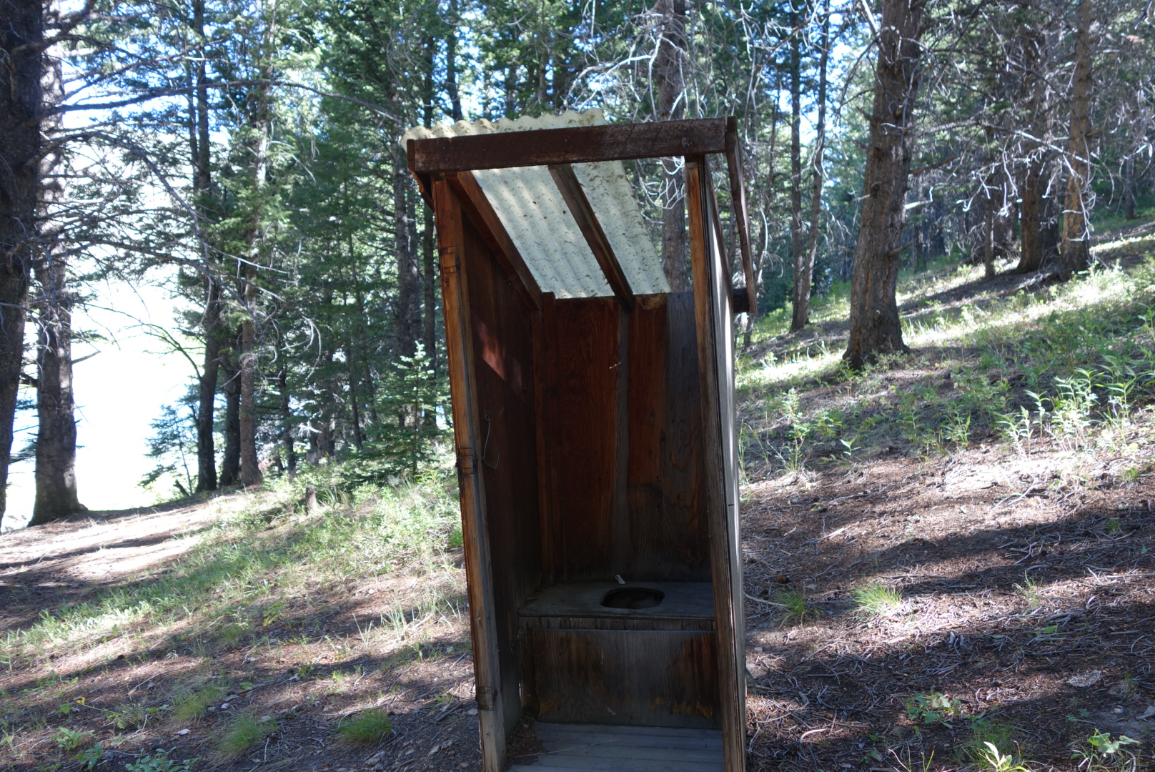 Two curious things about Deadman Lake.  First, there was a fox.  I startled him and he sprinted down the trail.  He stopped.  I approached and again he sprinted ahead.  We did this a few more times before he finally realized he could run off trail.  The second curiosity was an outhouse.  Just sitting there, all vandalized.  With no roads to Deadman’s Lake, it was a curious structure to find.