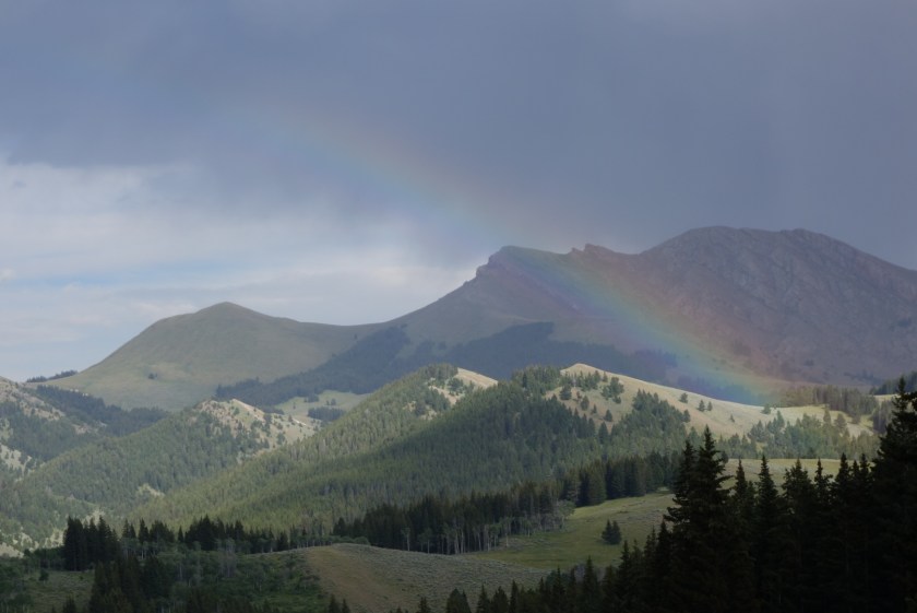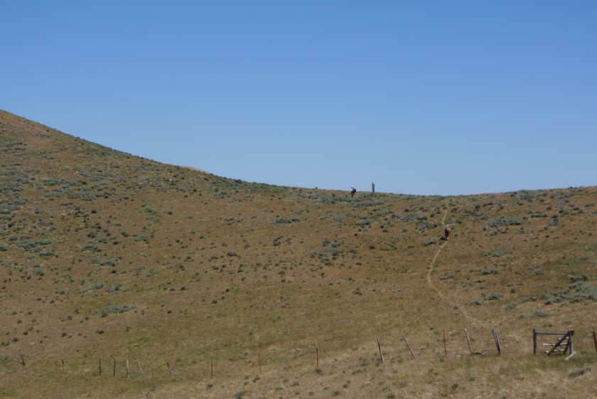 We had been going in and out of the US Department of Agriculture Experimental Sheep Station.  There was a sign explaining roughly what was going on.  It is intending to improve the stock and also see what plants the sheep eat. During the two day walk through the area, it seemed to me the most successful experiment they conducted was to make the sheep invisible.  Never saw a one. (Of the several signs explaining Experimental Sheep Station activities, they all misspelled “gaurd dogs.”)