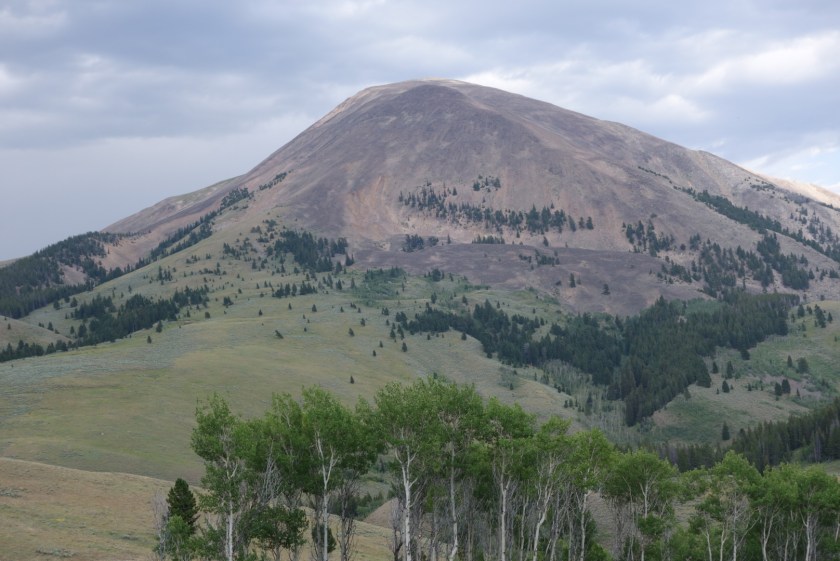 Once the trail entered a forested area with springs, I started looking for a safe place to camp.  I was across from Garfield Mountian, a huge, mostly featureless block of stone.  As I contemplated it while catching my breath. I noticed about 2/3rds of the way up was a large black shape that looked like it was moving.  I focused and thought it must be a moose, but I couldn’t understand what a moose was doing up that high.  Then, it moved into a slightly more open area and I made out the shape of a black bear.  I’m a suburban boy, but given how far away the bear was and that it was very clear what it was, I think it must’ve been huge.  I immediately searched my memory for any fragments of feeding patterns of black bears and whether he would cross the valley and visit me in the night.