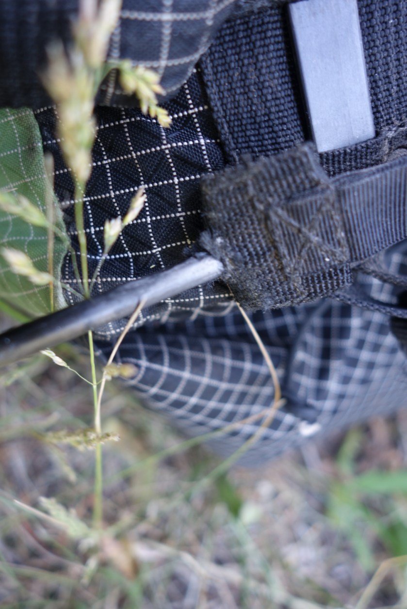 About 5 miles in to my climb, my backpack felt funny in the way it rode. I reached down and found one of the two carbon fiber sup port rods had poked through the support fabric.  I took off the pack and noticed the other one was about to tear through as well.