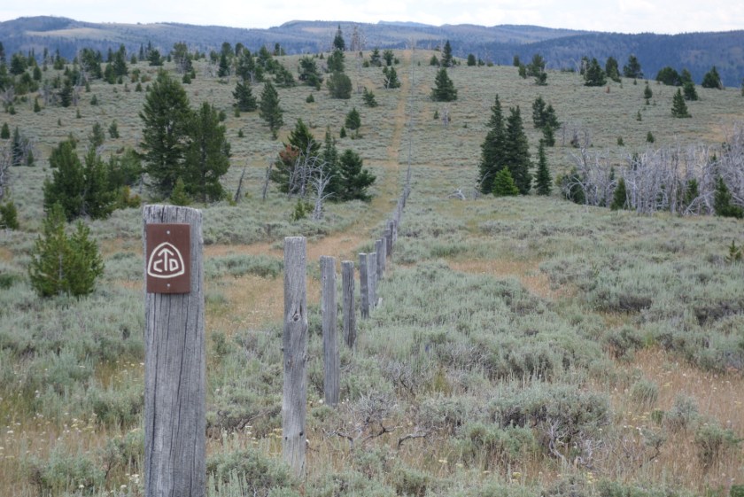 Later the trail became less well marked.  One of the mixed blessings of the Continental Divide is that there are several alternates.  On trails where only CDT hikers use the trail, alternates dilute traffic and therefore the tread is less visible. For me, open meadows/ fields are my undoing.  Fortunately, today these open areas  were hilltops, so even though there might not be specific tread to follow, a distant post with a CDT sign on it was good enough for navigation.