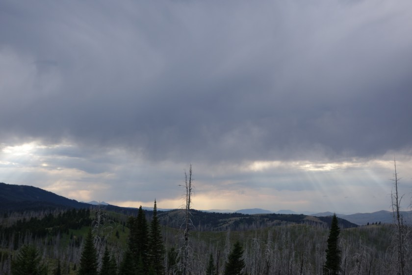 After the second switchback, which was just perfect, I reached some amazing views. Lakes, forest, West Yellowstone,  the notch in the caldera where the highway enters the park.
