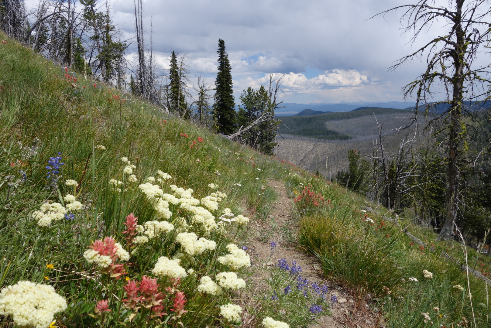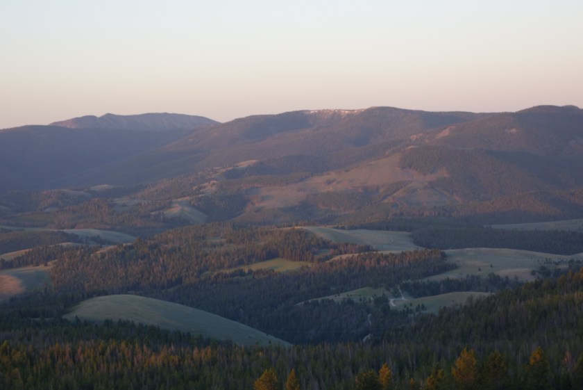 After crossing Grizzly Hill, I had about 2 hours more daylight. The terrain went to a hodgepodge of forest and open sagebrush meadows. I tried calling the local motel to confirm a 9 am pickup, but no cell service.