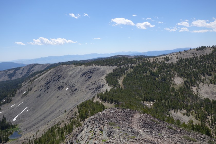 After the initial morning climbs, the trail spent a considerable amount of time on treeless ridges affording amazing views. Although it started to get hot, the breeze picked up as an off set. At one exposed steep climb in the late afternoon, the wind had to be near 30 miles an hour and it felt like it helped push me up the hill.