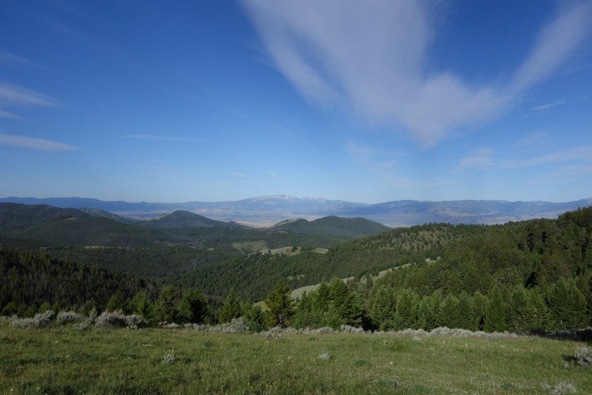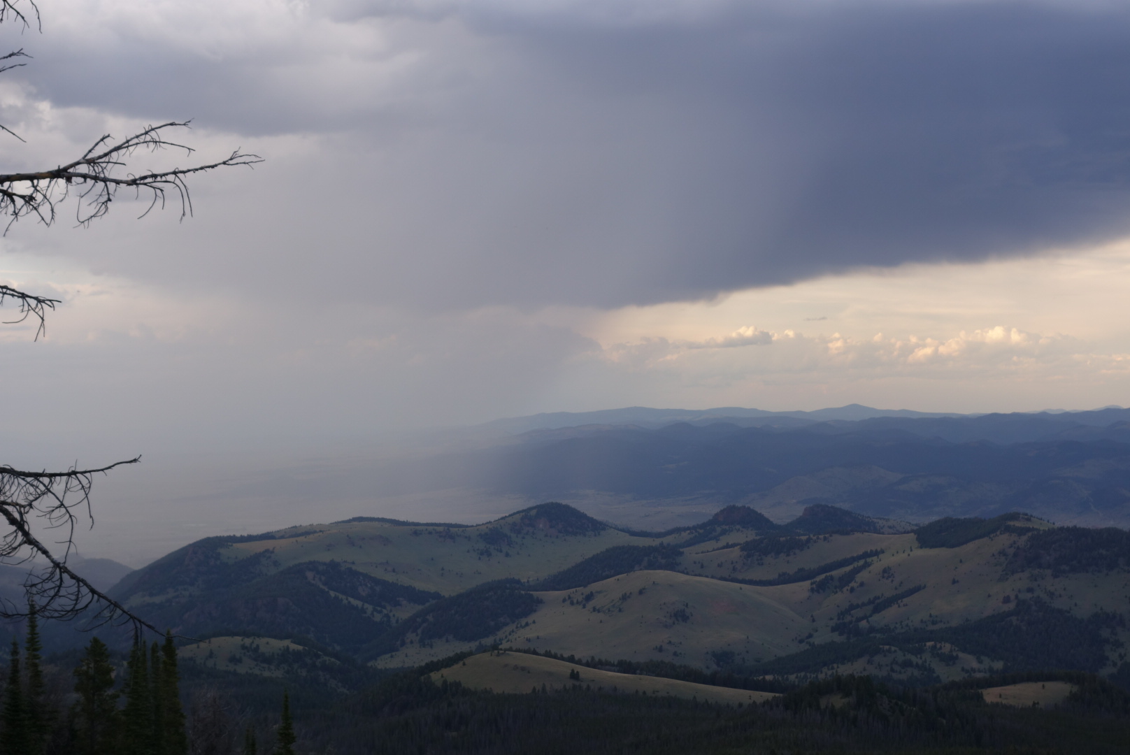 A fierce rain storm accompanied a drop in temperature as I walked along a highway. I put on another top layer and my rain gear. It promised to be a wet night. As I turned up my forest service road to reach the Anaconda Pintler Wilderness, a nice local stopped and offered me a ride to the trailhead (7 miles). I thanked him and said I was trying to walk the whole way. He shared that the rain was supposed to turn to snow, so I thanked him for the information.