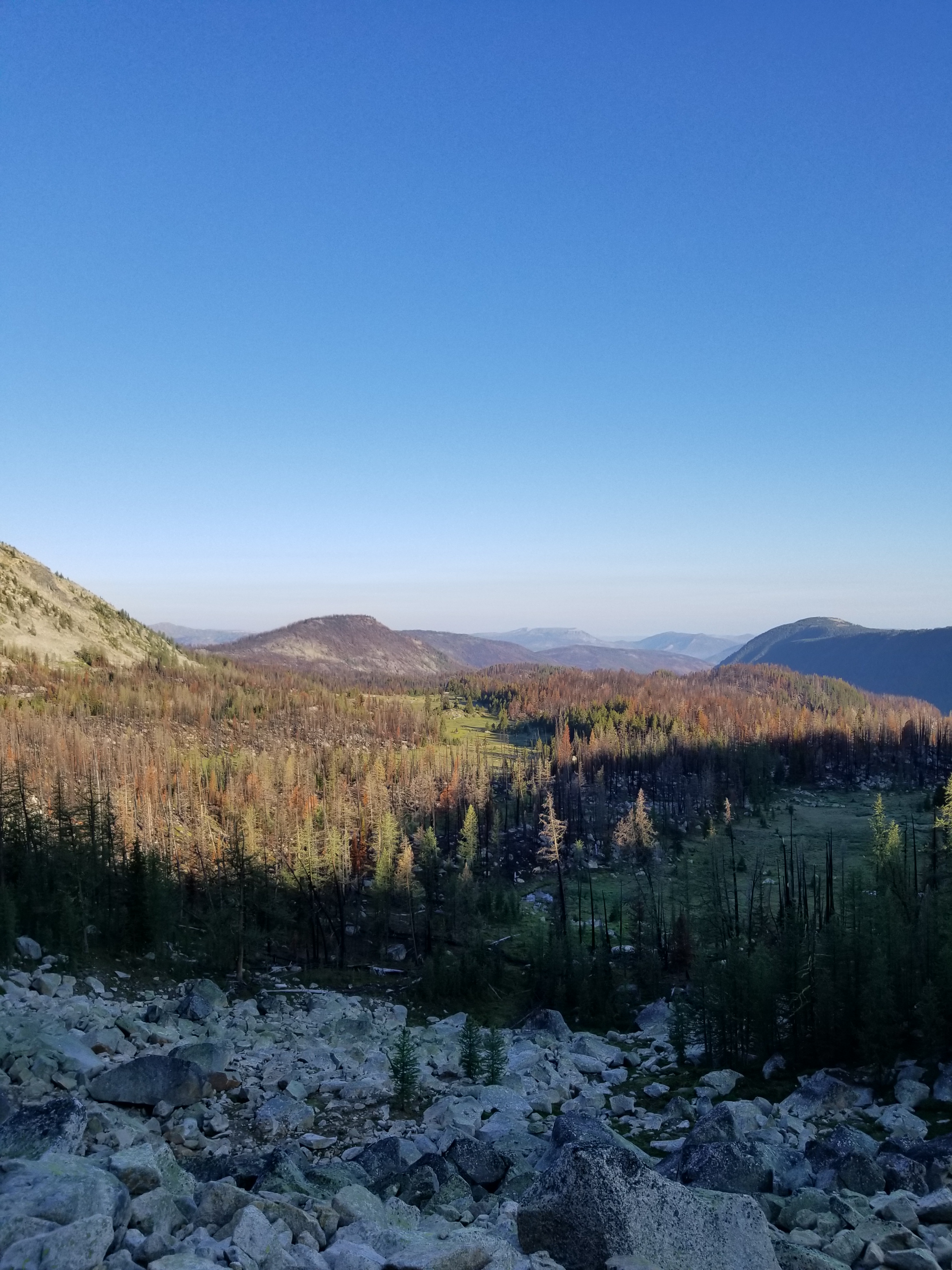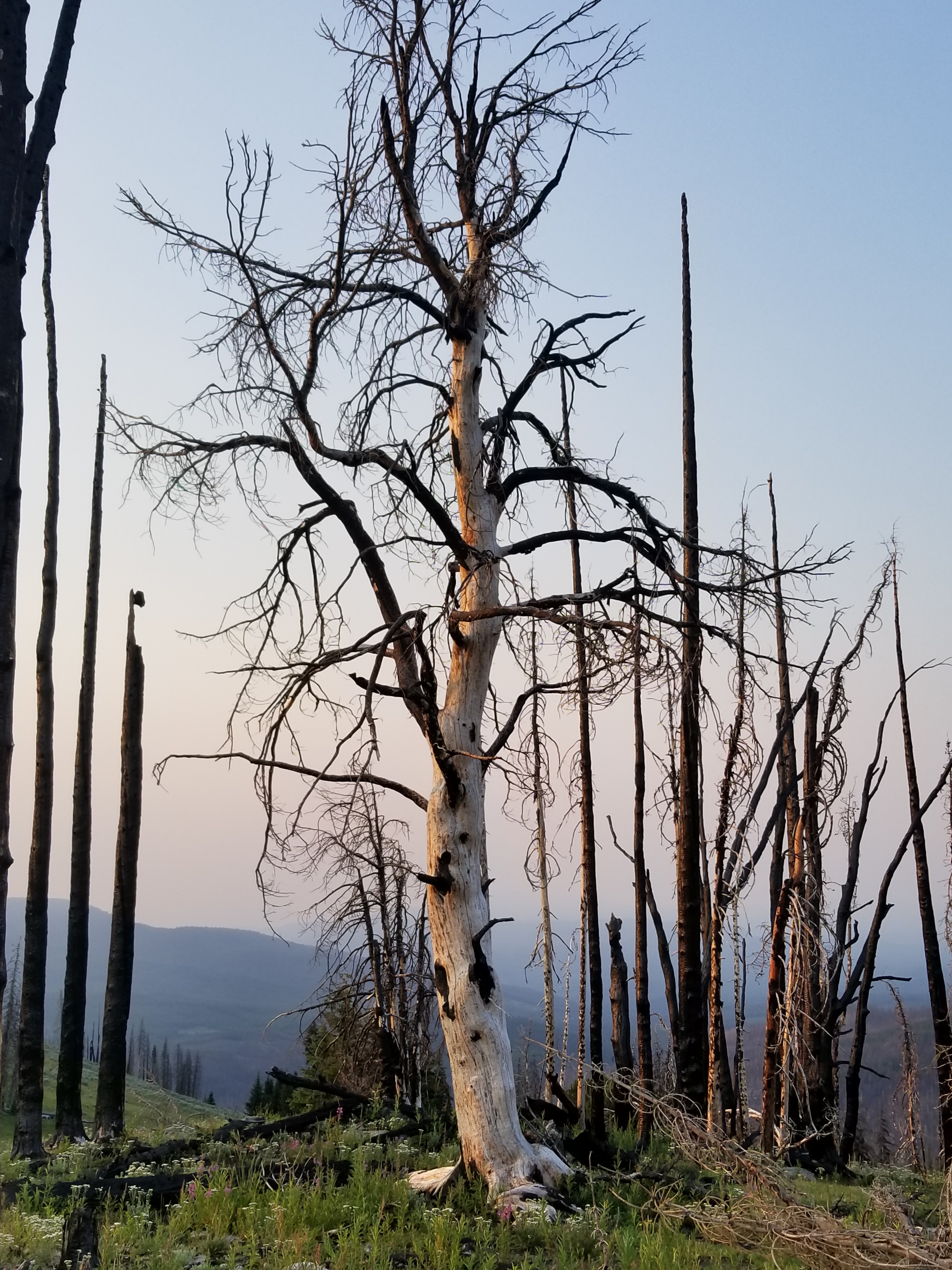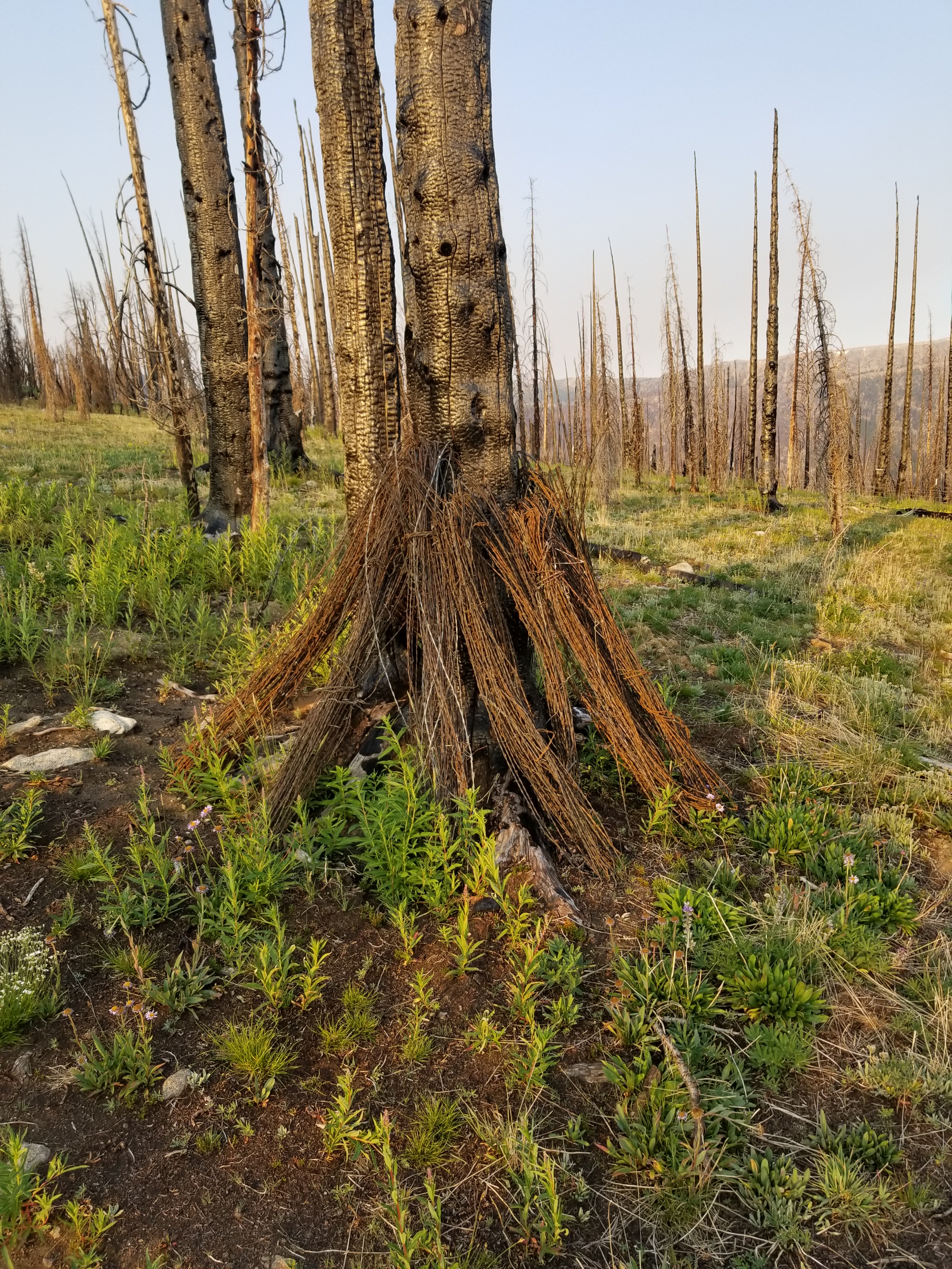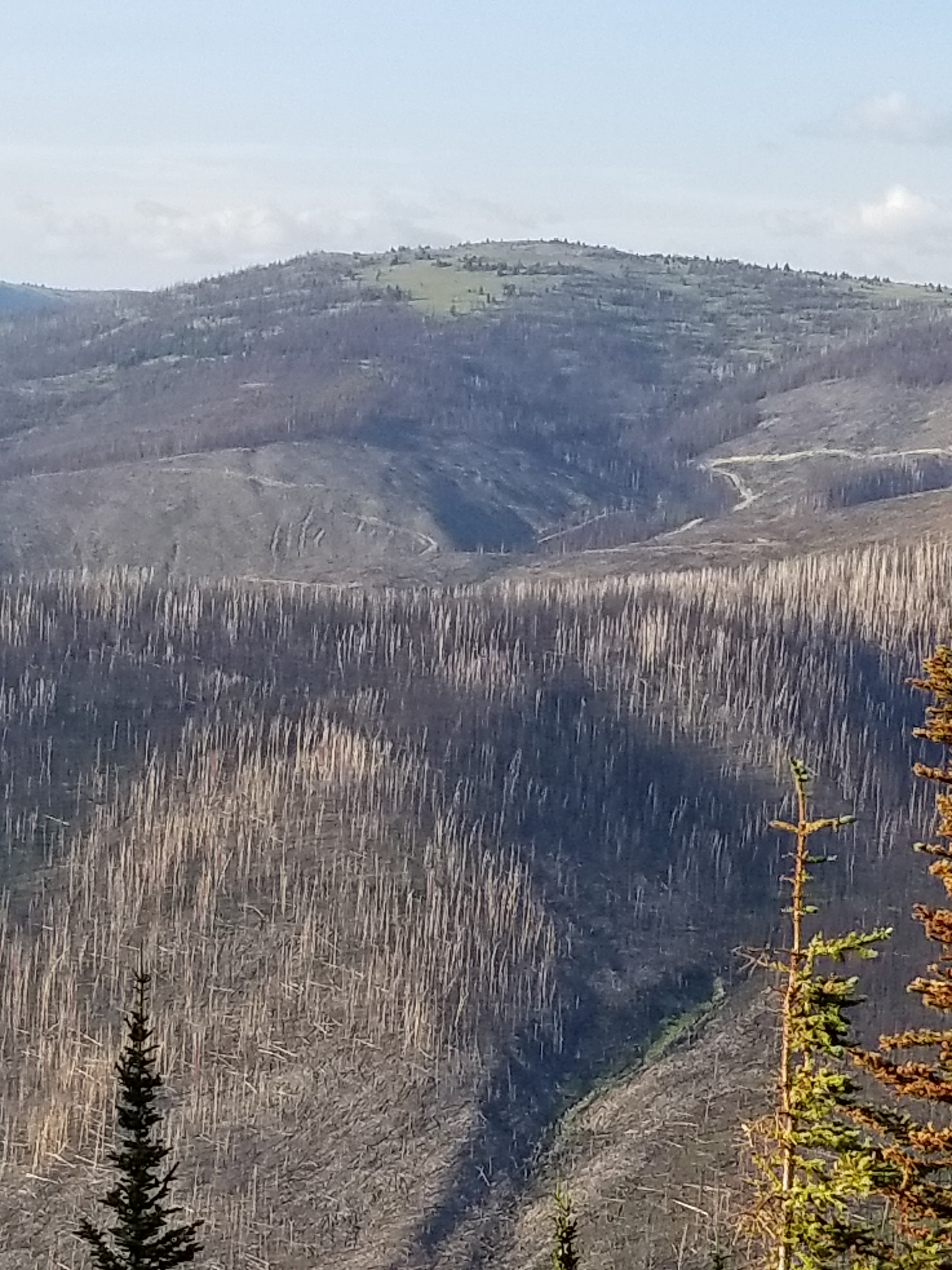 After another mile my pleasant hike up the Methow River Valley turned into Satan’s shrubbery. Let me back up. Nature abhors a vacuum. Thus, after a fire, certain “successor” plants like fireweed grow. However, the most aggressive plants are shrubs. Not like boxwood or other “friendly” shrubs, these grow out and then up. The goal must be to block sunlight from reaching the nearby soil. You can picture two of them sprouting up on opposite sides of the trail. They both grow out to block the other and then race to own sunlight. This creates intertwined and overlapping branches. Walking through it is a nightmare. You lose track of the original trail and are stuck flailing in six foot shrub jungles. It was frustrating, exhausting, and bloody.