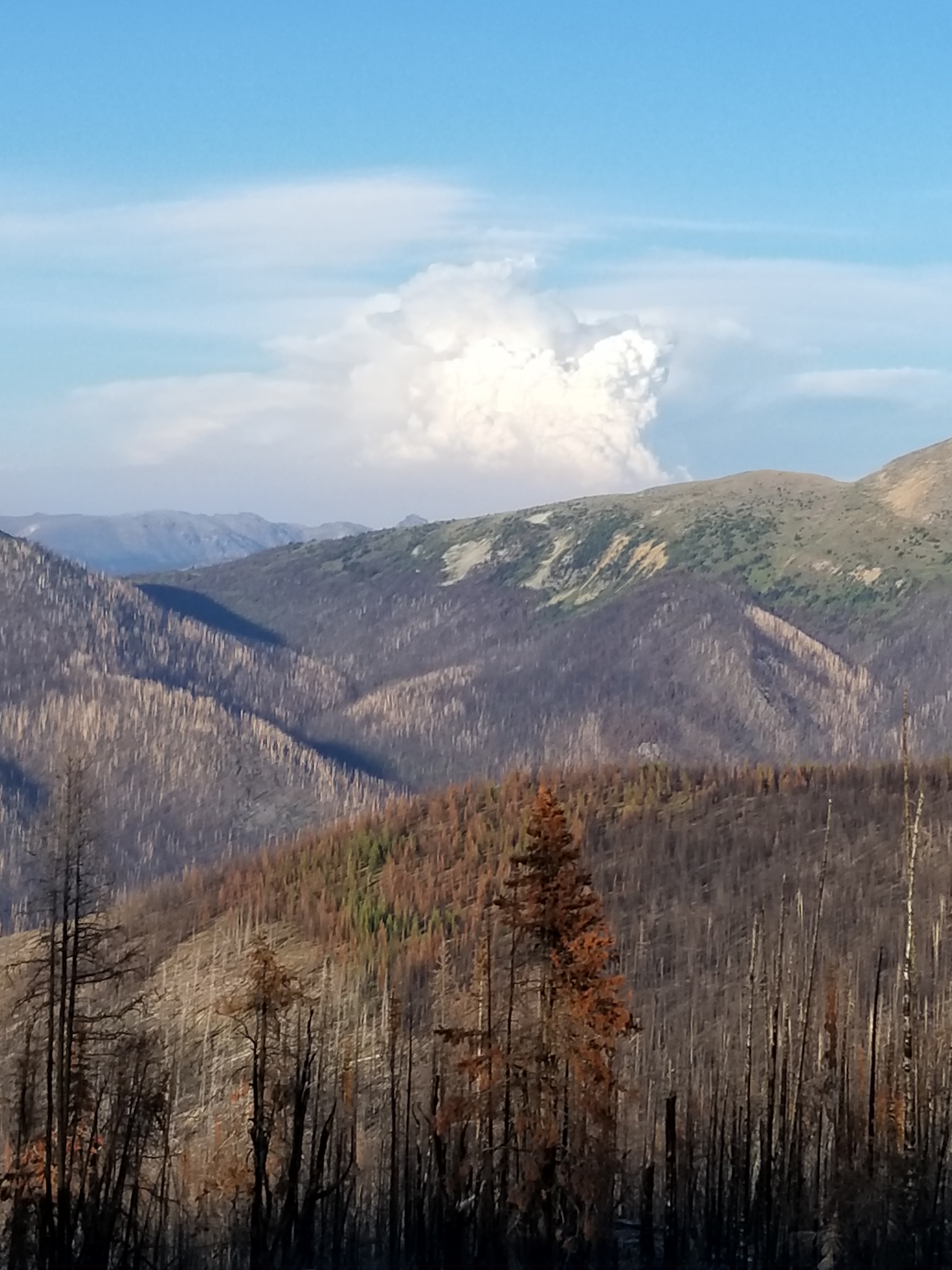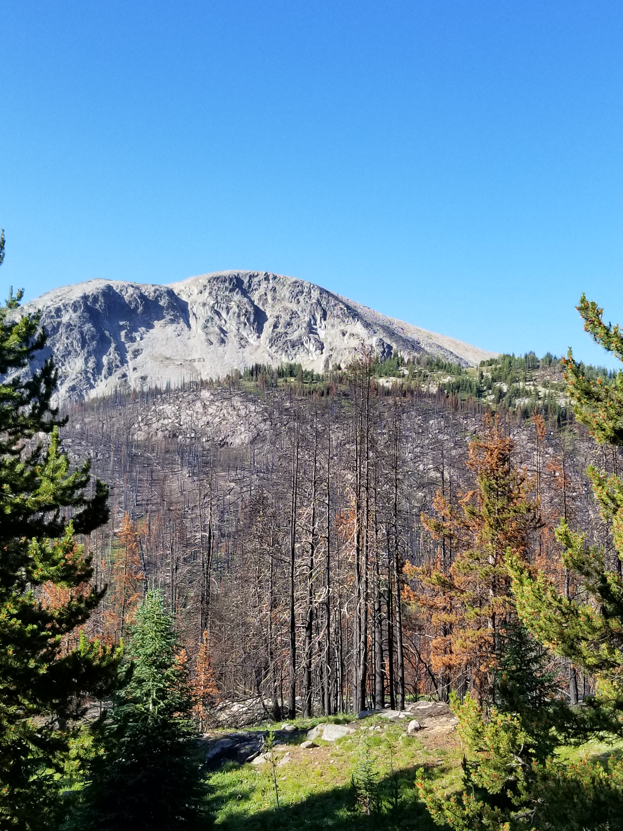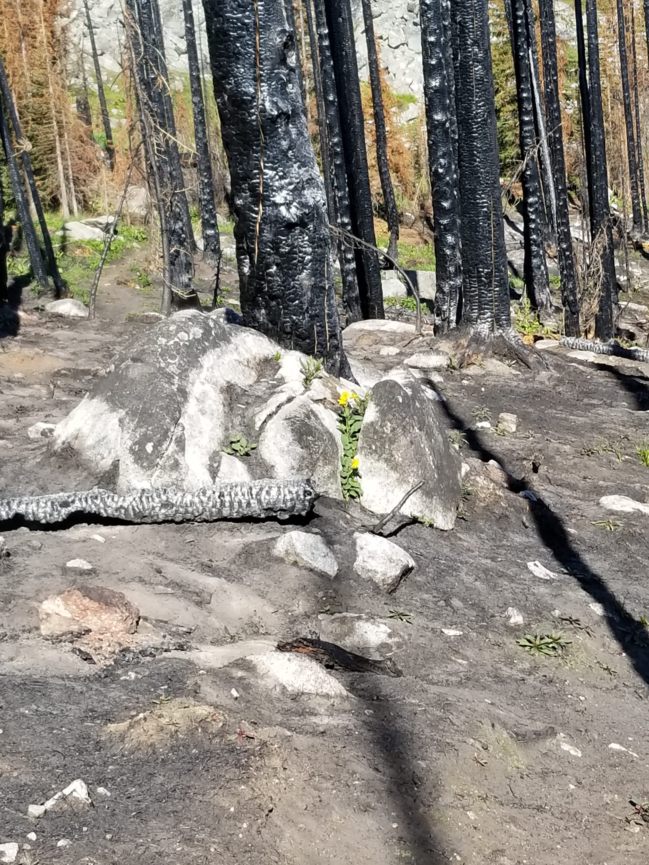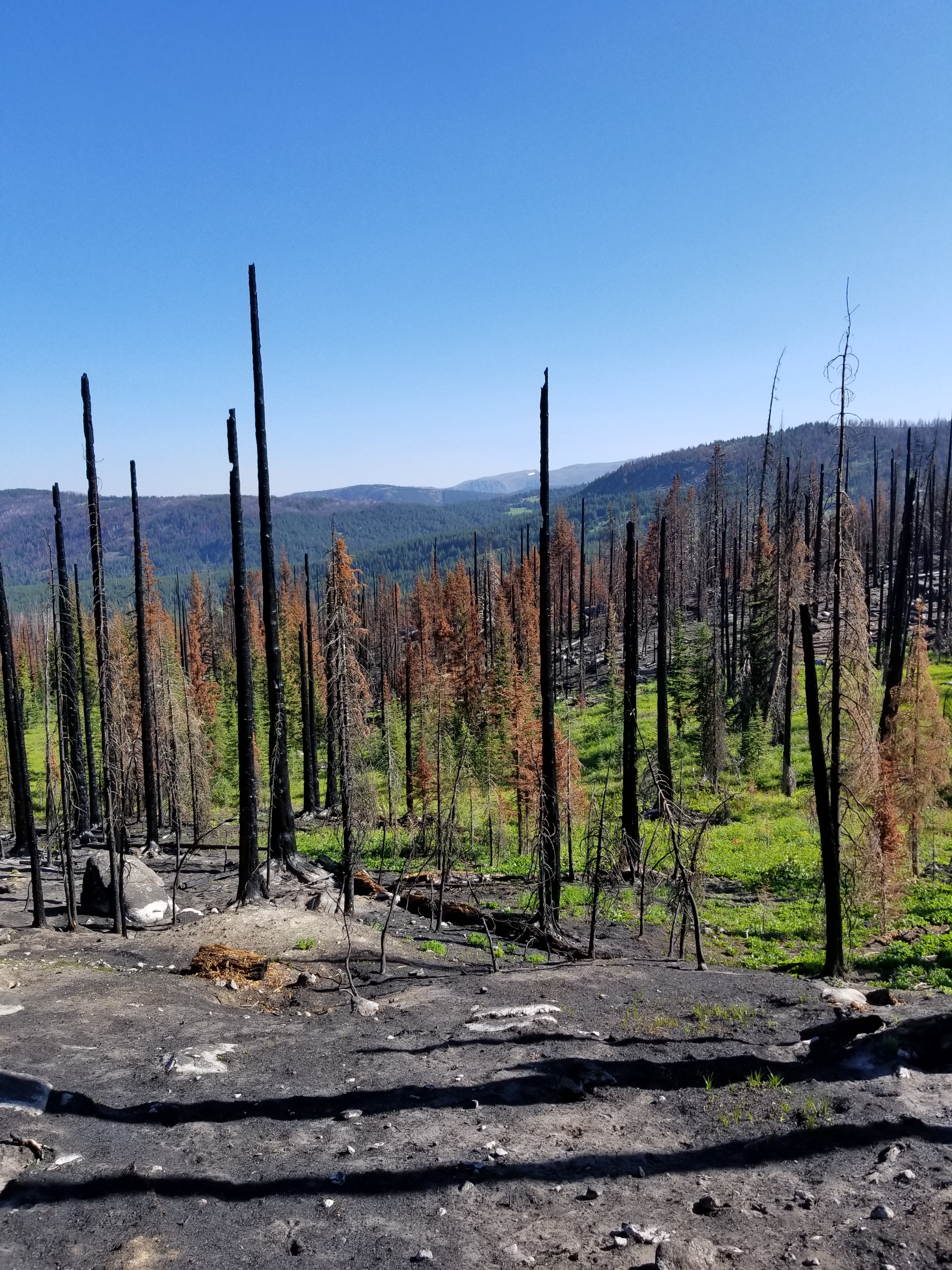 I had researched this little used access trail. It was a known problem that about 2 miles in a bridge was destroyed, requiring a ford. Also, there were notations about the trail being “impassable” to stock. The area had burned about 15 years ago. Standing burned trees topple over, like sticks, so it was not surprising to see the description.