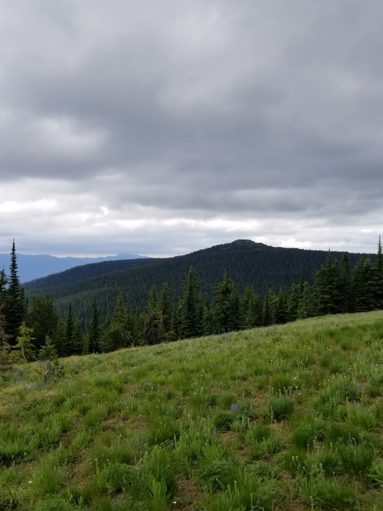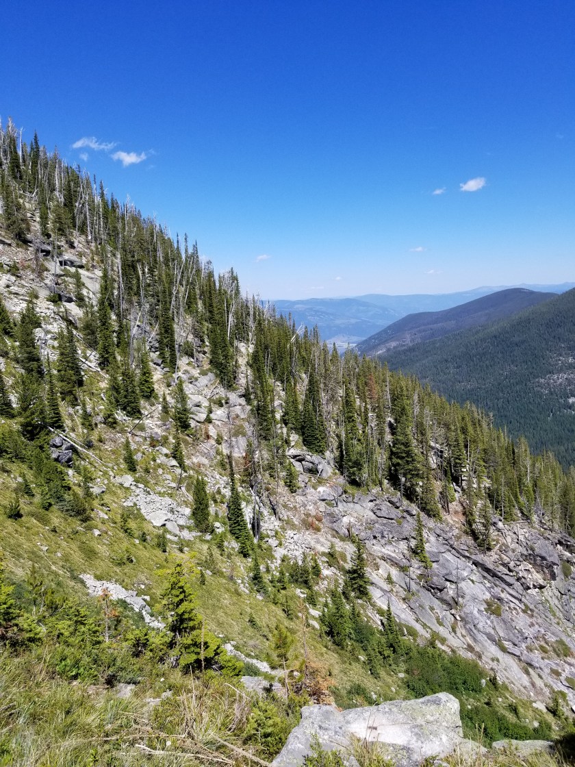 The mountain range I am in is called the the Purcells. They all max out around roughly 7,000 feet above sea level and most have rivers between them. They cover the northwestern part of Montana and the eastern part of Idaho’s panhandle. They are not as steep as the mountains between Polebridge and Eureka. This means they are slightly more amenable to forestry. Therefore, a lot of the hiking is through forest that: