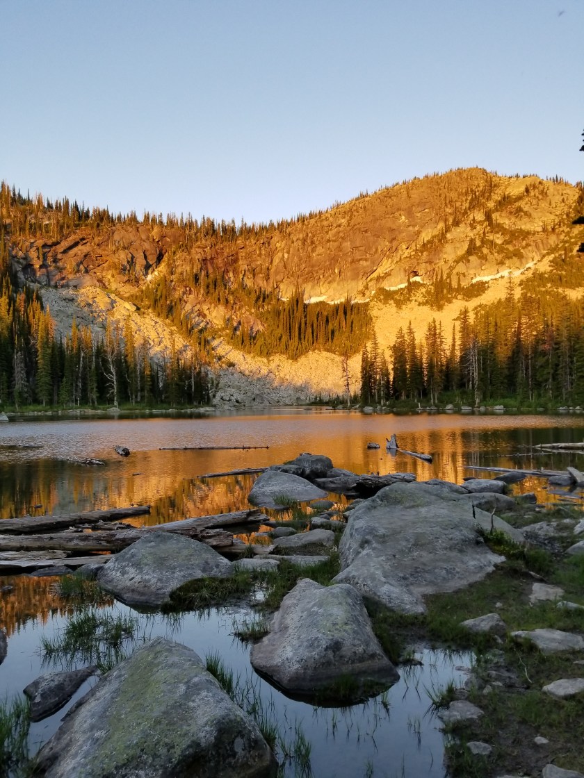 I woke up way early and forced myself to stay still for a bit. I knew the family wouldn’t be up. I snuck out to get a sunrise pic of the lake and grab my food hang.