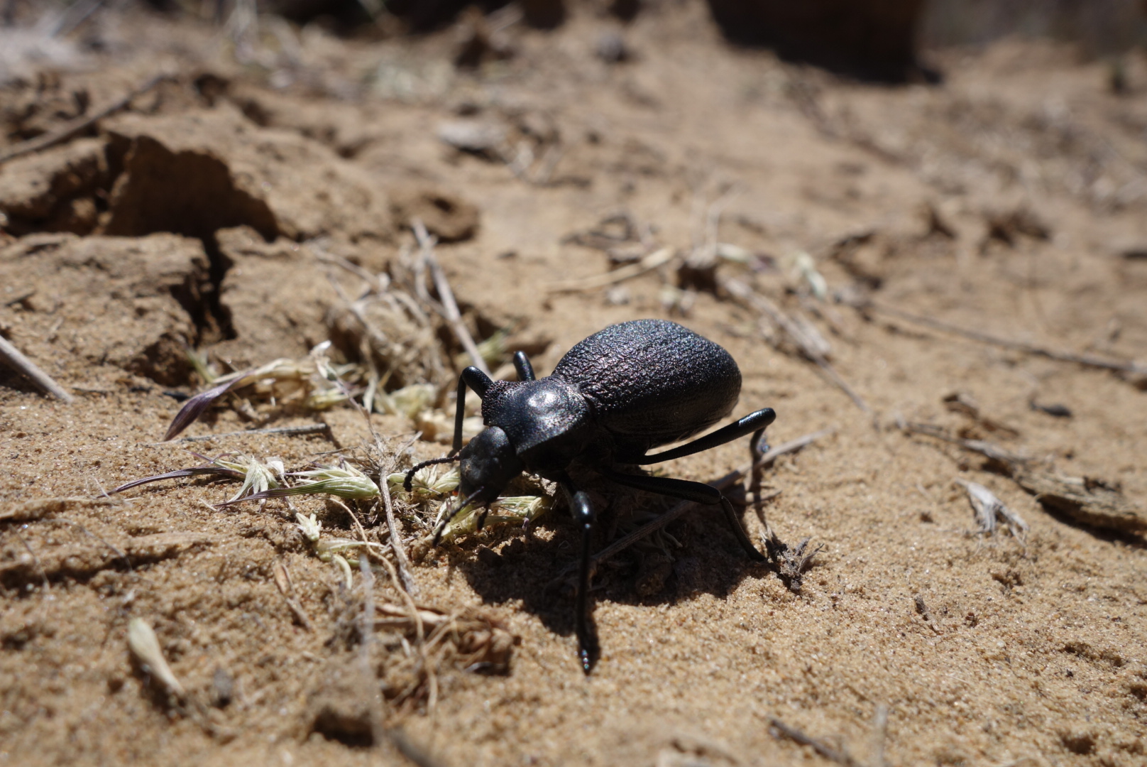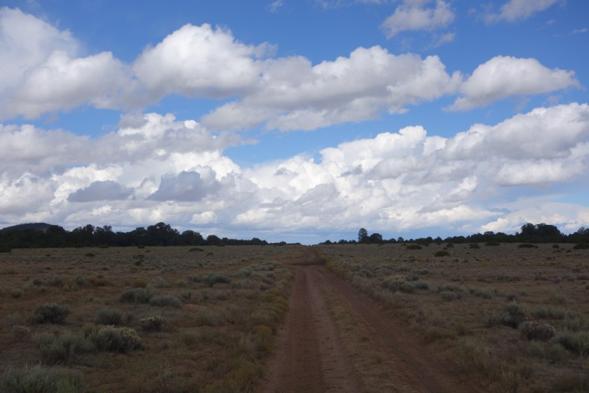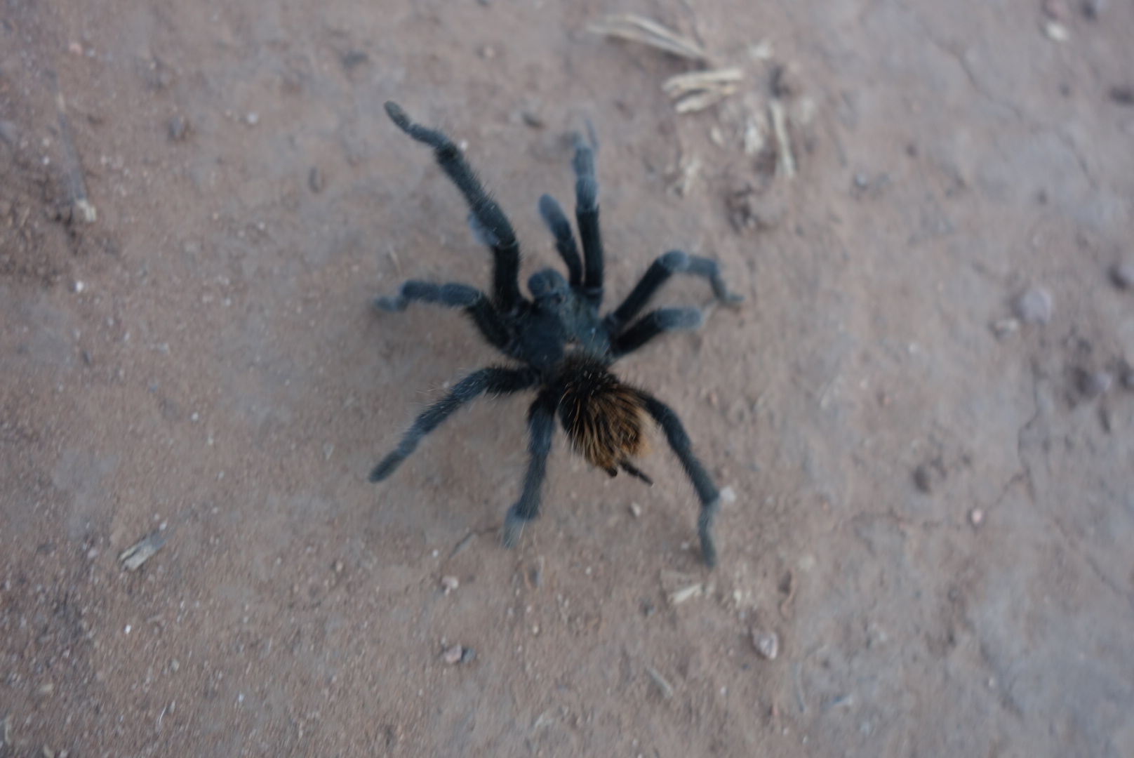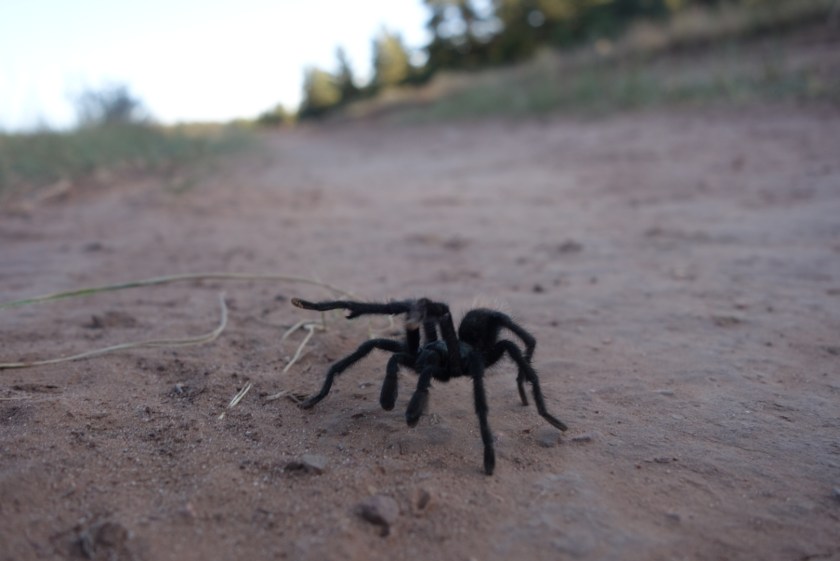 Around 3:00, I finally peeled off the gravel round to a less traveled road. It rolled gently through ponderosa pines. It was quiet and cool. I saw my first tarantula. It was very cool to see although not quite as big as I had imagined.