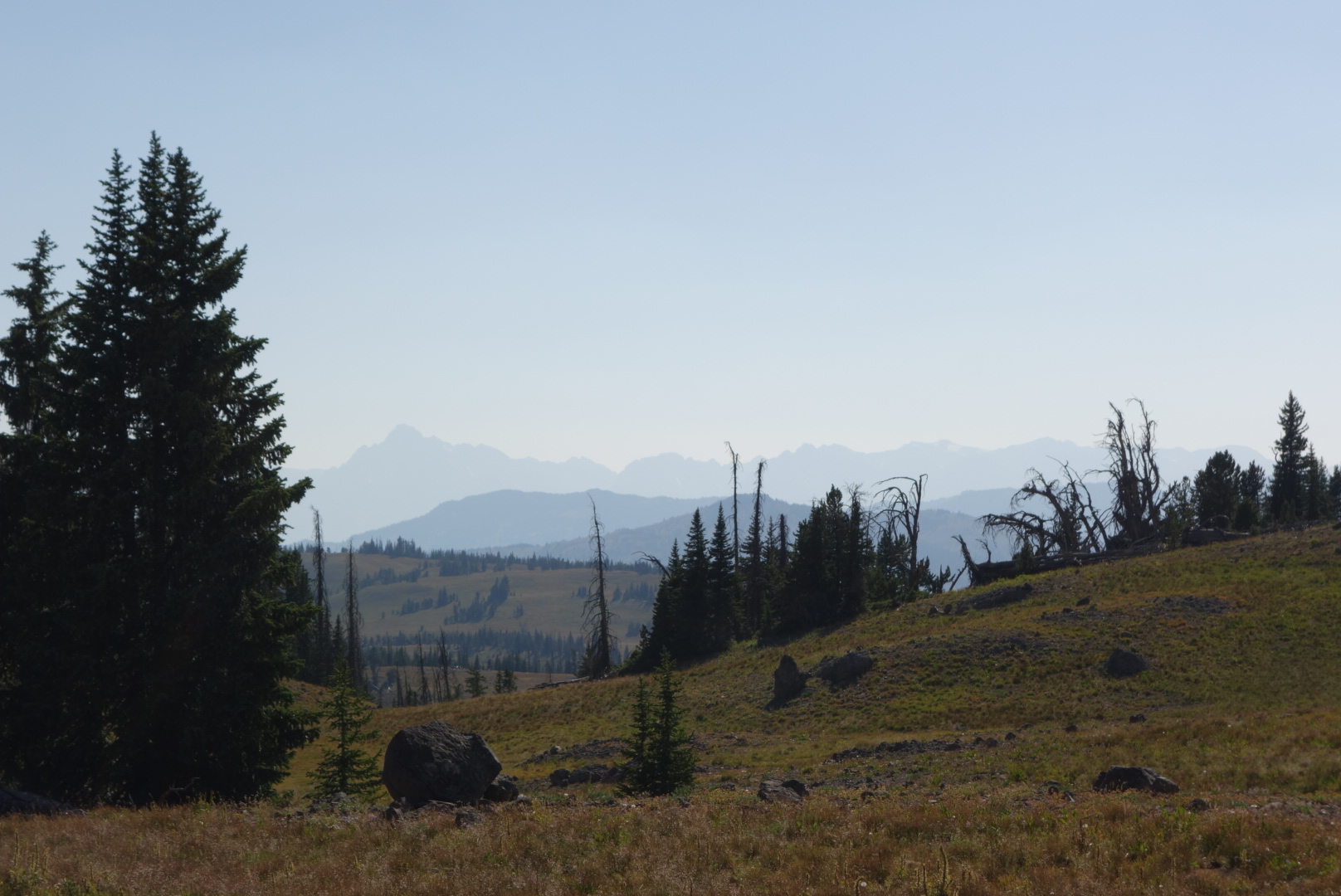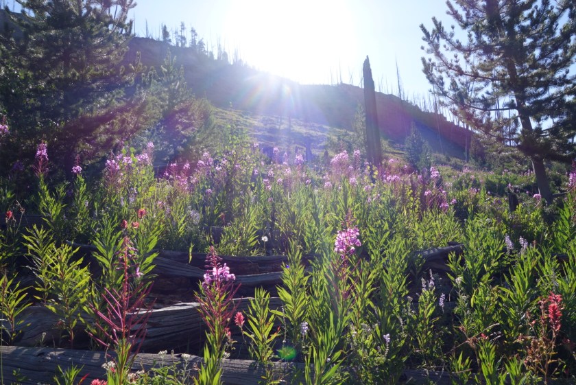 I started the climb back up to the Continental Divide on the west side of the valley. Even though the vegetation was the same, the geology was different as the rocks were more lava like. What an interesting geology in this area.