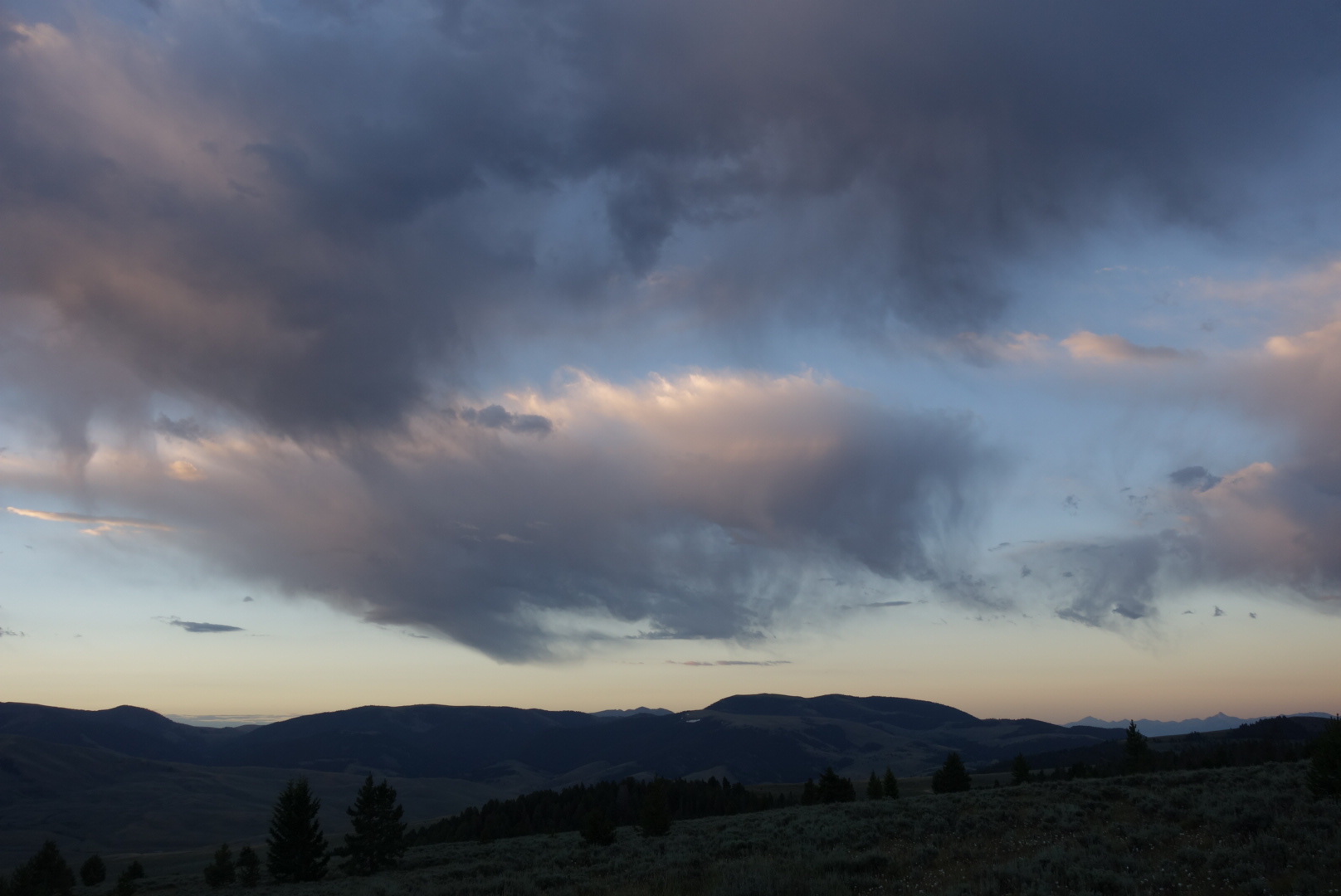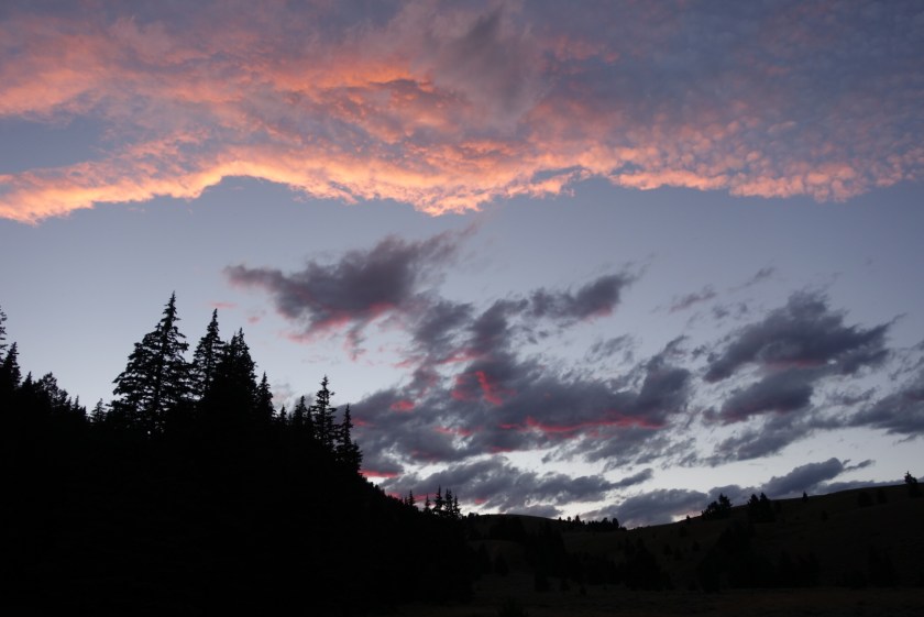 I set up camp as it grew dark. There were thunderheads on the horizon, but clear skies overhead. It was not clear if we would stay clear or deal with lightning on the Divide.