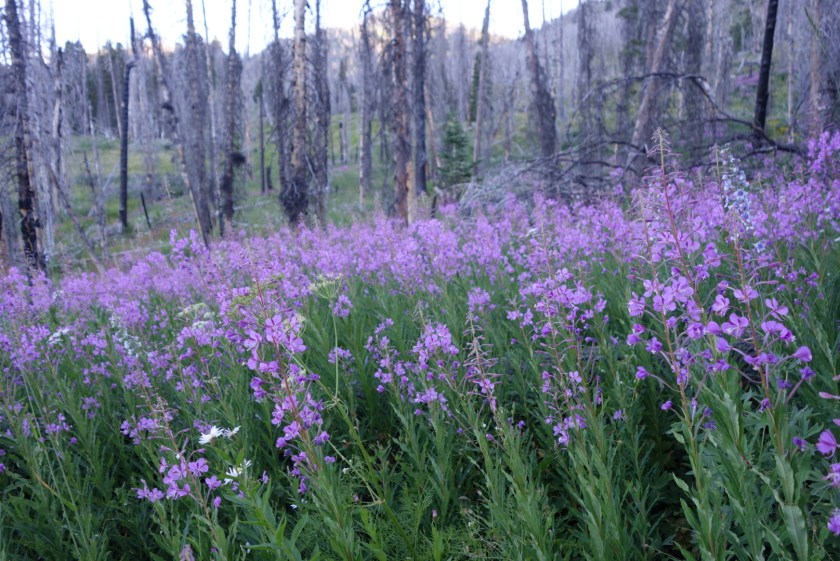 I started hiking around 10. It was mostly thick, young trees. I noticed something brown and large ahead on my right. It was moving towards the trail. I froze. An elk or moose. I slowly reached for my camera. It was a bull elk. He heard me unsnap my camera case. We both stood still. Eventually, he continued on toward the trail. I was able to start the movie function on my camera, but it wasn’t zoomed in enough. He did poke through the trees, took about 2 seconds to recognize me, and bolted.