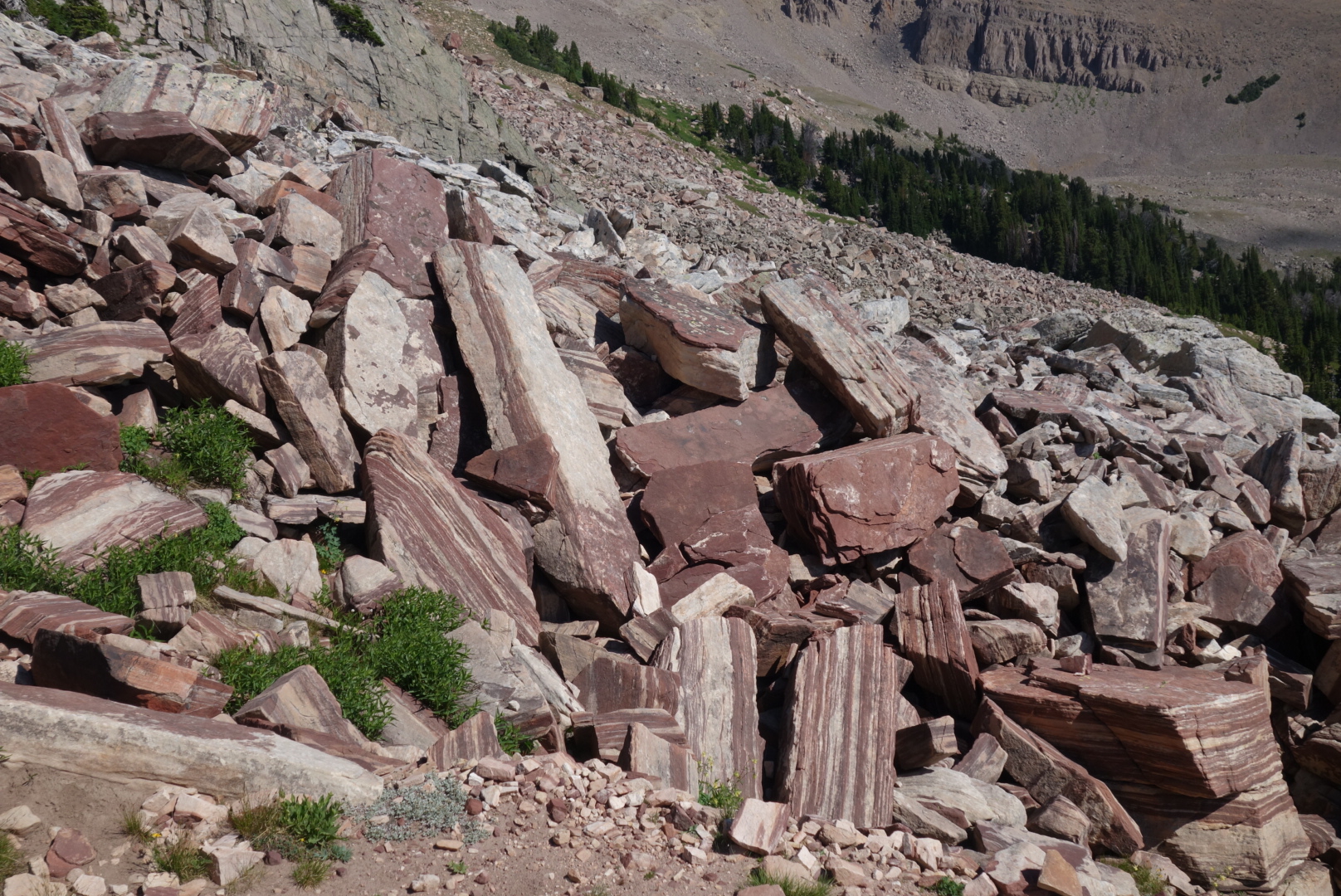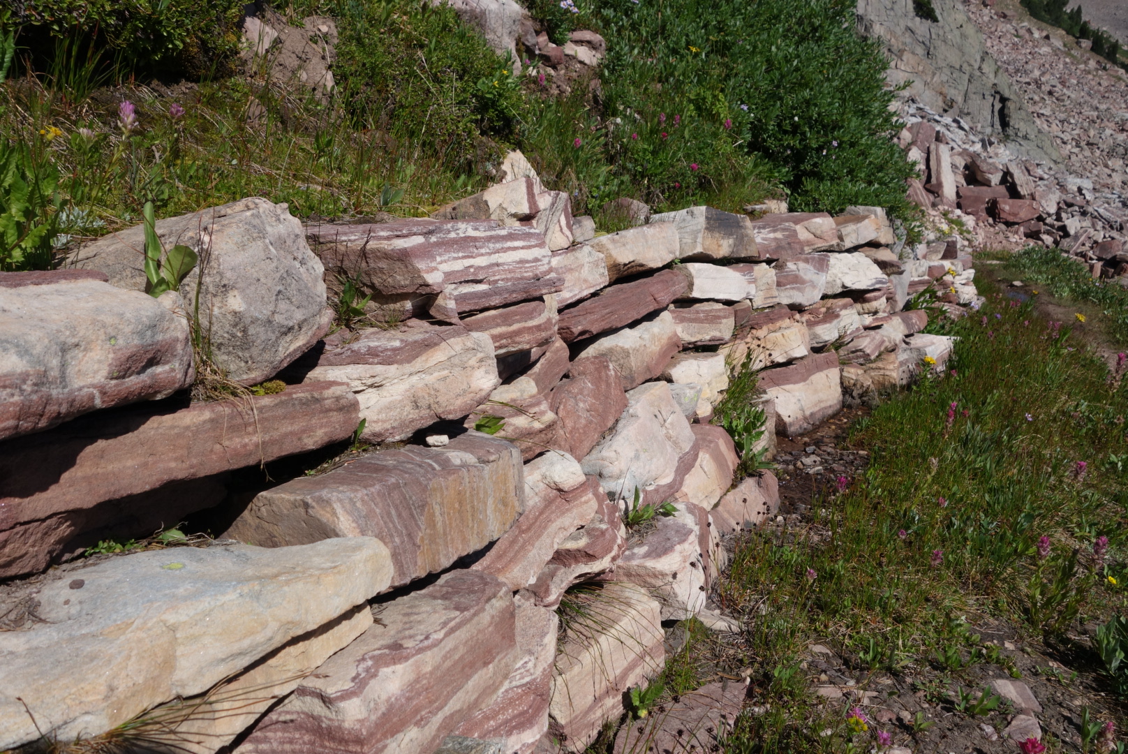 The first switchback was a little too long, but it was a great way to start the day. There were some stones that were layered in red and white. It seemed like a great color and pattern for stone countertops.