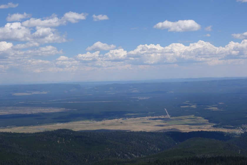 After the second switchback, which was just perfect, I reached some amazing views. Lakes, forest, West Yellowstone, the notch in the caldera where the highway enters the park.