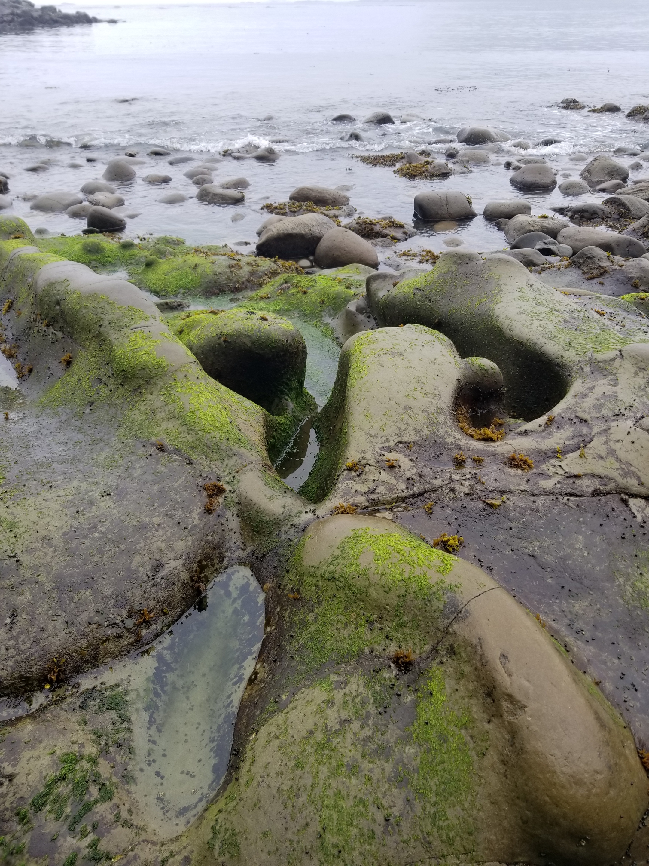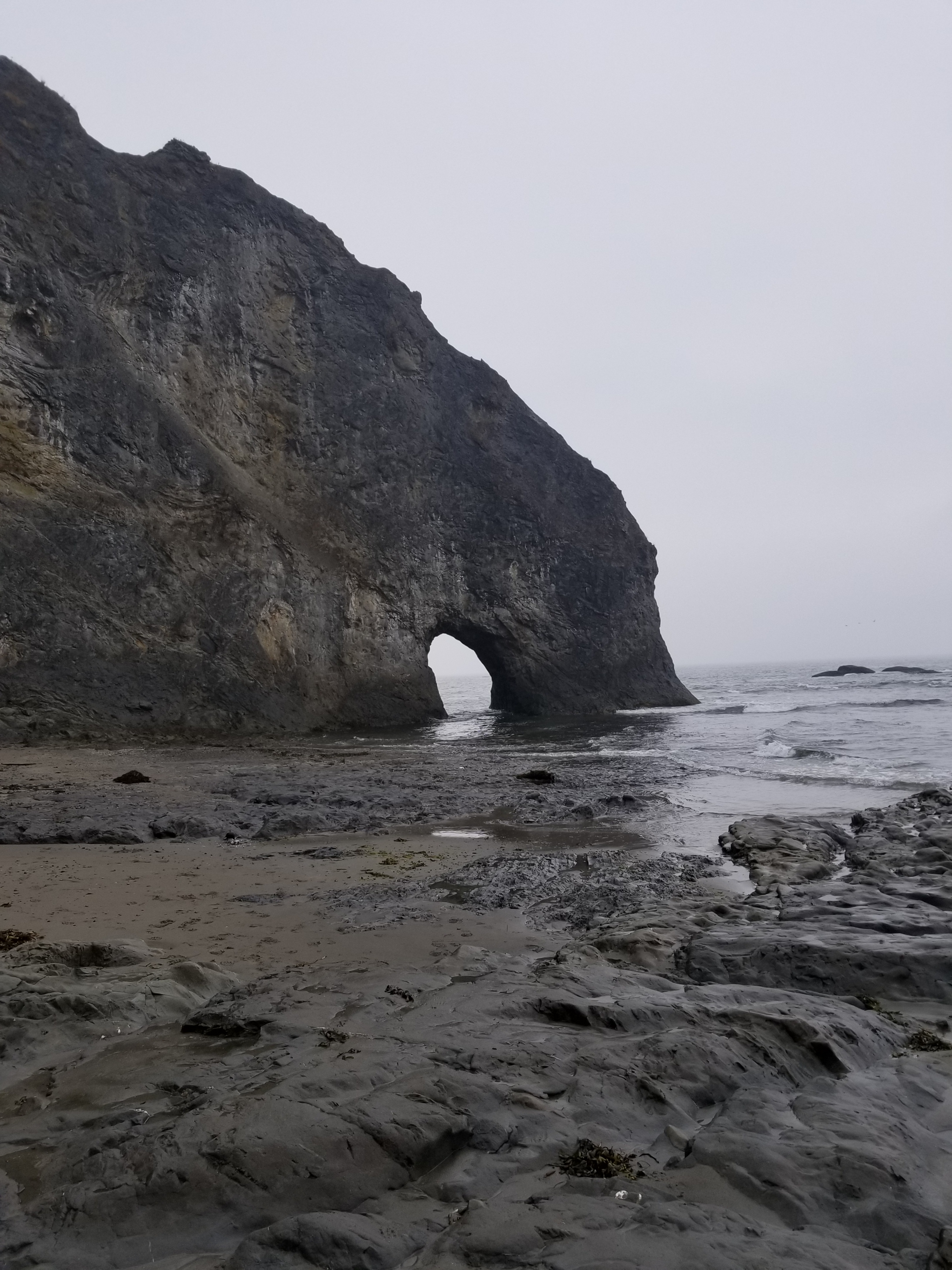 As the tide turned, I packed up and went north towards Hole-in-the-wall. If you’ve never backpacked on a sandy beach, it primarily consists of trying to find the firmest sand. Soft sand saps energy. On rocks, the name of the game is not putting all your weight on the slippery rocks and plants. Plus, have trekking poles or a stick to help with balance. I didn’t want to break my expensive trekking poles on the last couple days so I just found a sturdy stick.