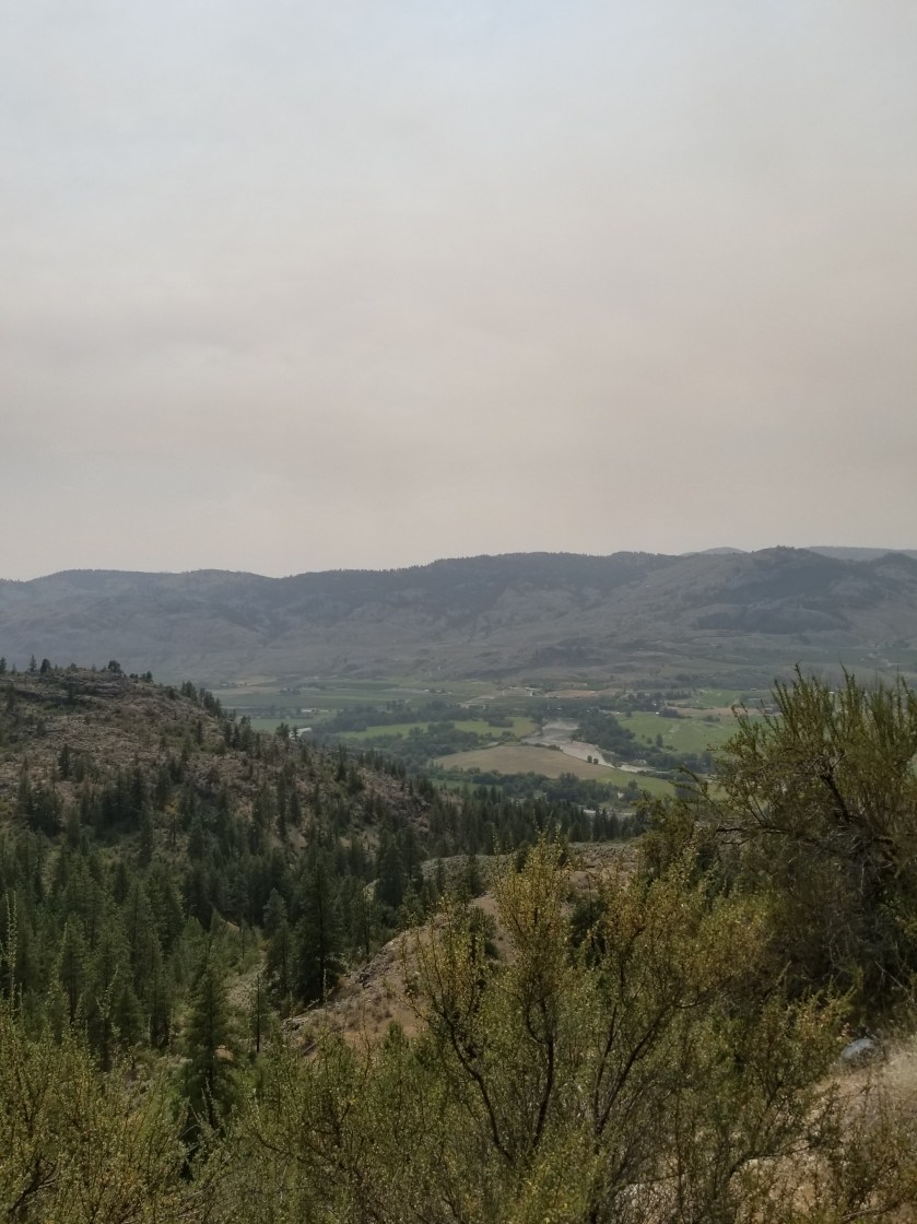 With enough water to rehydrate and get me through the night, I descended. I was surprised the trailhead was so spacious. I found a place on the fence near an apple orchard. I propped up my backpack and opened my umbrella to create a shady spot in the 96 degree heat.