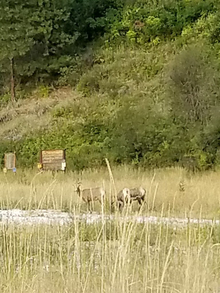 For amusement, a herd of mountain sheep went up and down the hillside in front of me. The younger ones even came down to eat. However, when the dominant Male returned, they just watched me and even when I got in my tent he would not let any of them come down.