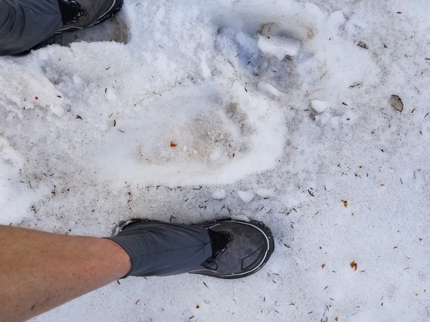 Late in the day, after passing cattle and timber harvesting, I came to a “V” in the road. A sudden crashing in the bushes uphill made me reach for my phone. I spied some black ears and a scalp. I wasn’t sure if it was a wolf or a black bear. As I was getting my camera ready to video, the bear cub came into the open. “Oh shit”. I hightailed it out of there not waiting a nanosecond to see where momma was.