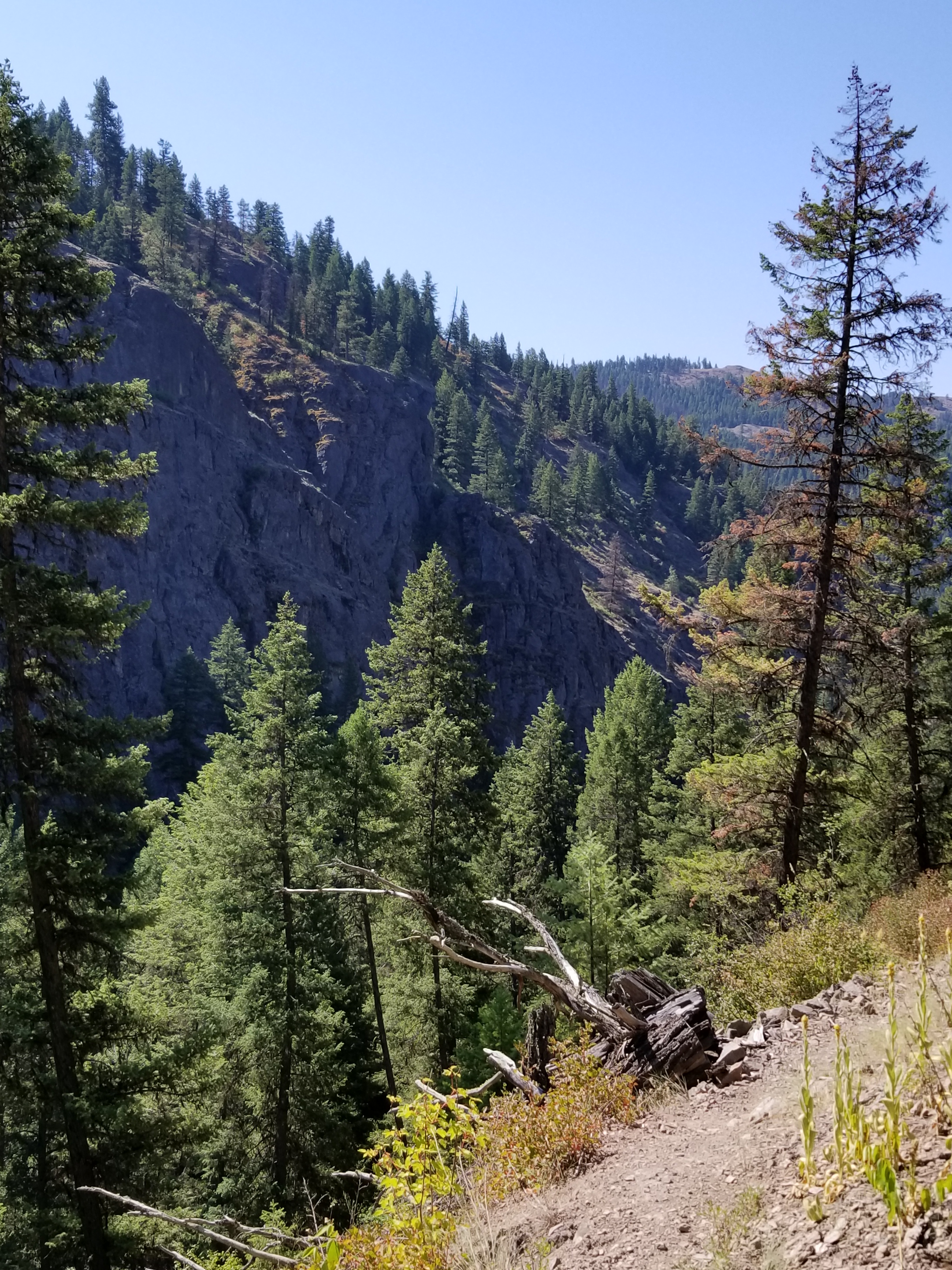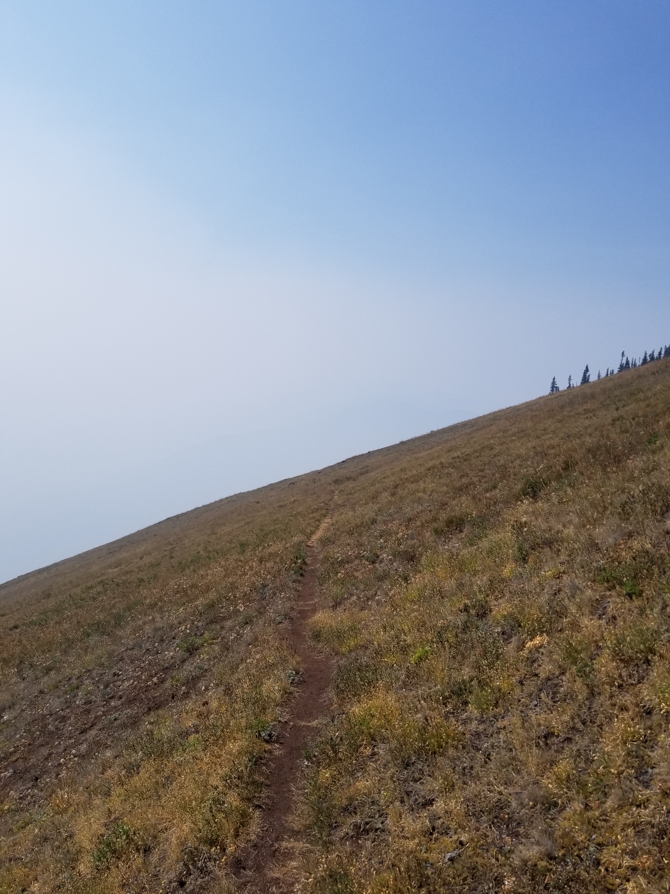 Eventually, I began my descent. Over the next several hours I walked down from above tree-line to subalpine to grassland, dry ponderosa to rainforest. Early on, it was incredibly steep and I nearly wiped out as I tripped and my top-heavy pack wanted to carry me down.