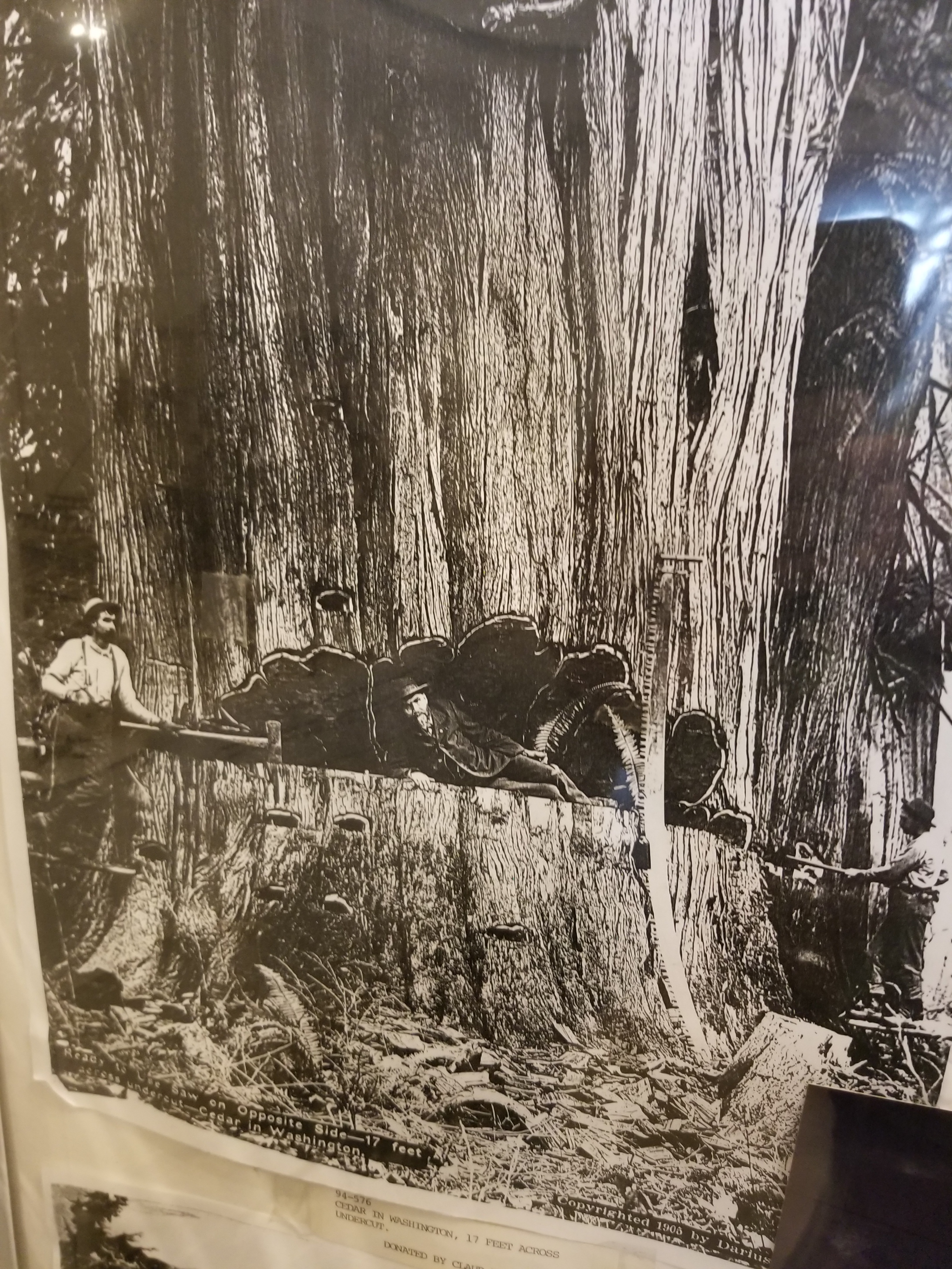 First, they had great photographs of early logging and railroad. There were some huge trees harvested in the Skagit Valley in the early years. Tow transport the logs, railroads were built, sometimes traveling over 130 high trestles.