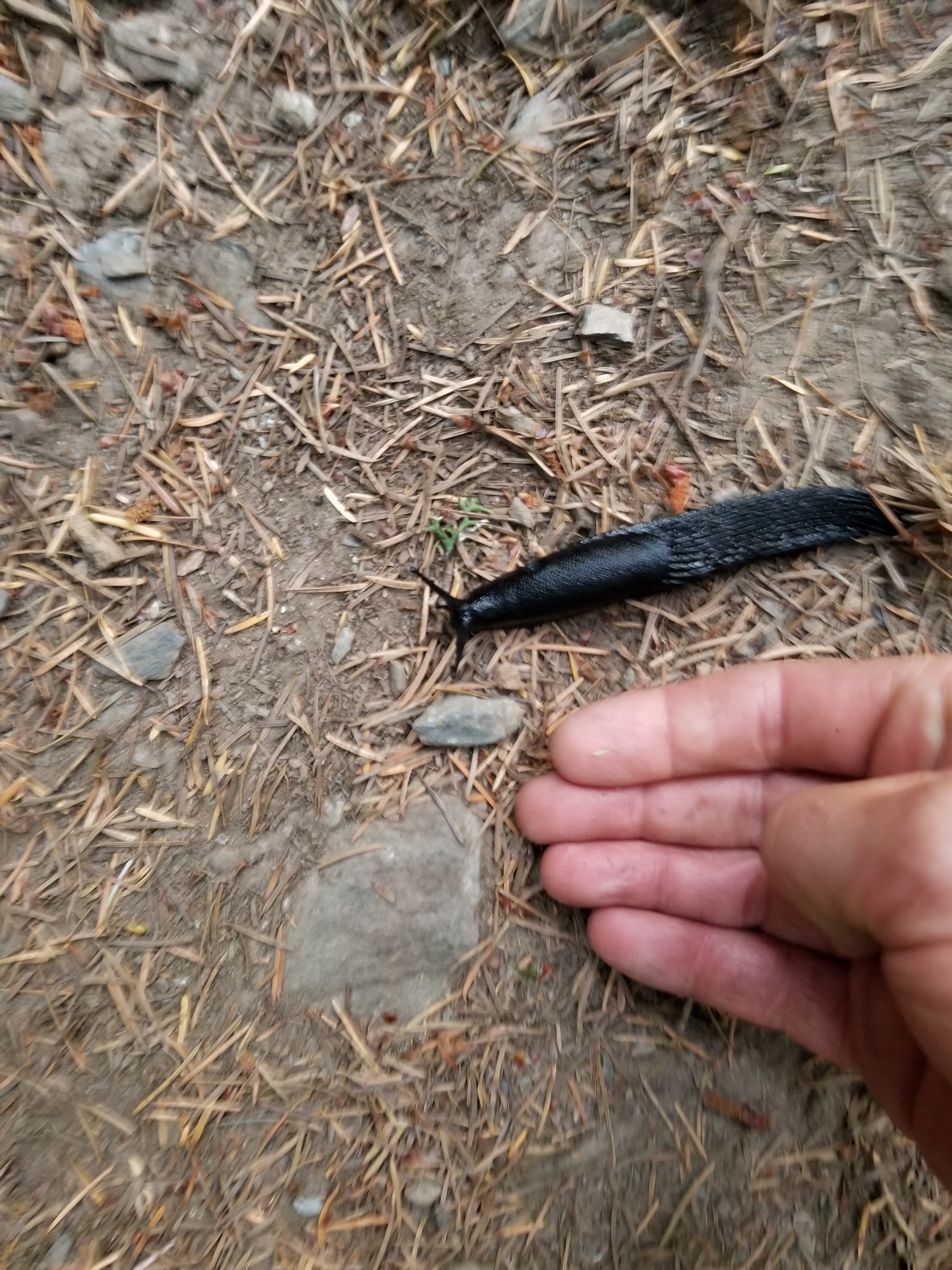 Late in the day, after passing cattle and timber harvesting, I came to a “V” in the road. A sudden crashing in the bushes uphill made me reach for my phone. I spied some black ears and a scalp. I wasn’t sure if it was a wolf or a black bear. As I was getting my camera ready to video, the bear cub came into the open. “Oh shit”. I hightailed it out of there not waiting a nanosecond to see where momma was.