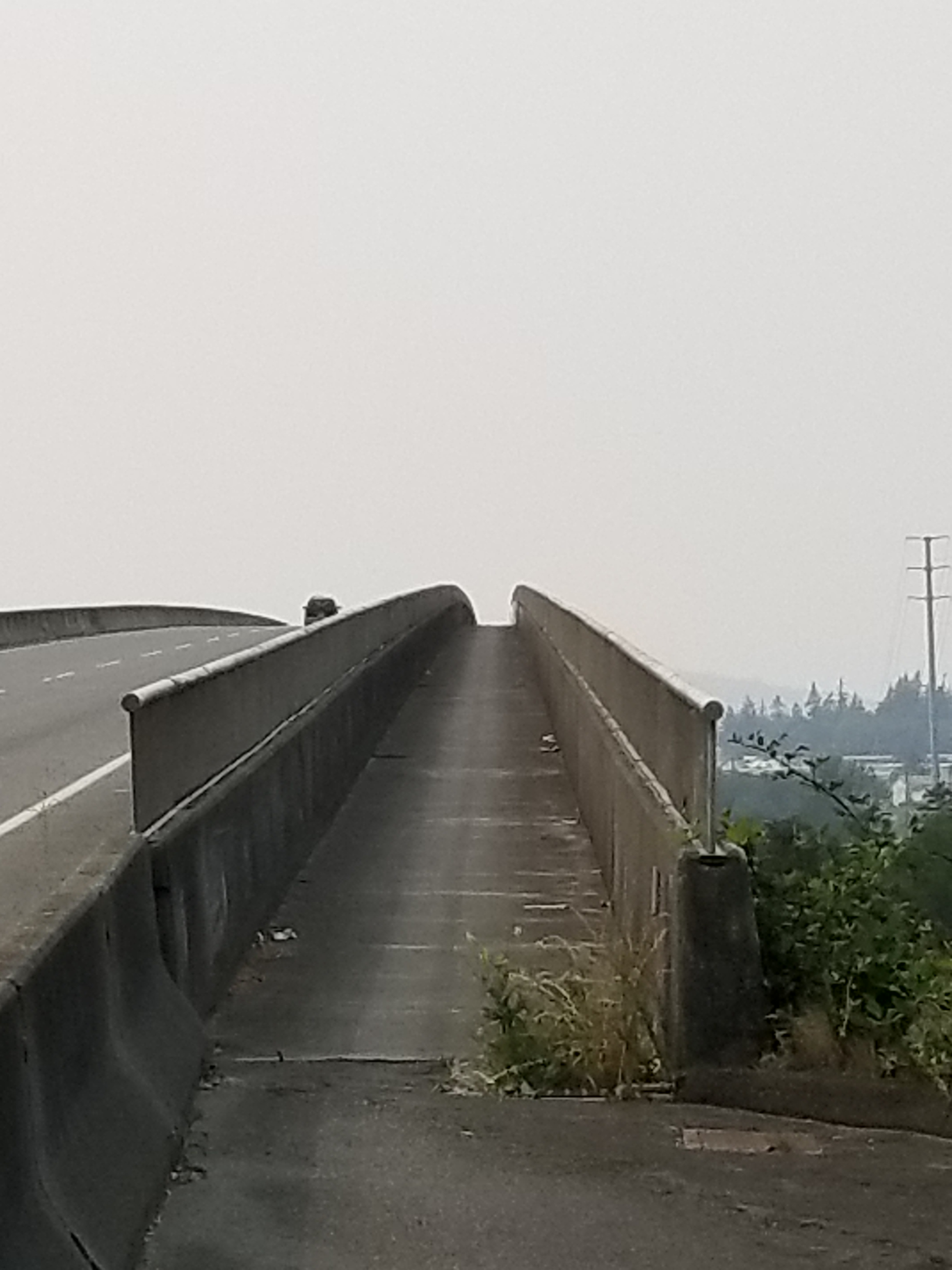 The next few miles were simultaneously boring and life threatening as I followed Highway 20 in the right direction. Along the way I was amazed to see how many birds are killed by cars. I also found some dude’s paycheck. I took it into town and would mail it to his employer. Lastly, I went over this huge bridge that thankfully had a separate passenger path.