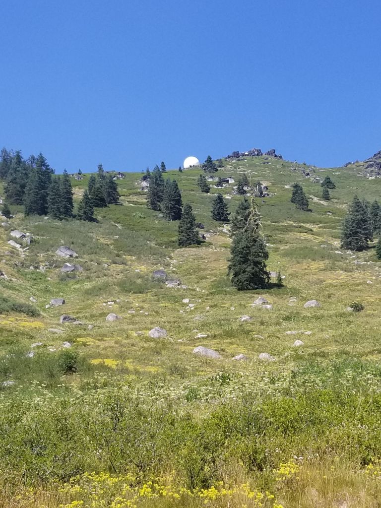 It was nice to see honey bees in large numbers; back home, I live in a suburb and rarely see honey bees. Also, there was a large white structure that looked like a golf ball on top of the mountain. This made it easy to identify the mountain to gauge distance traveled as the day wore on.