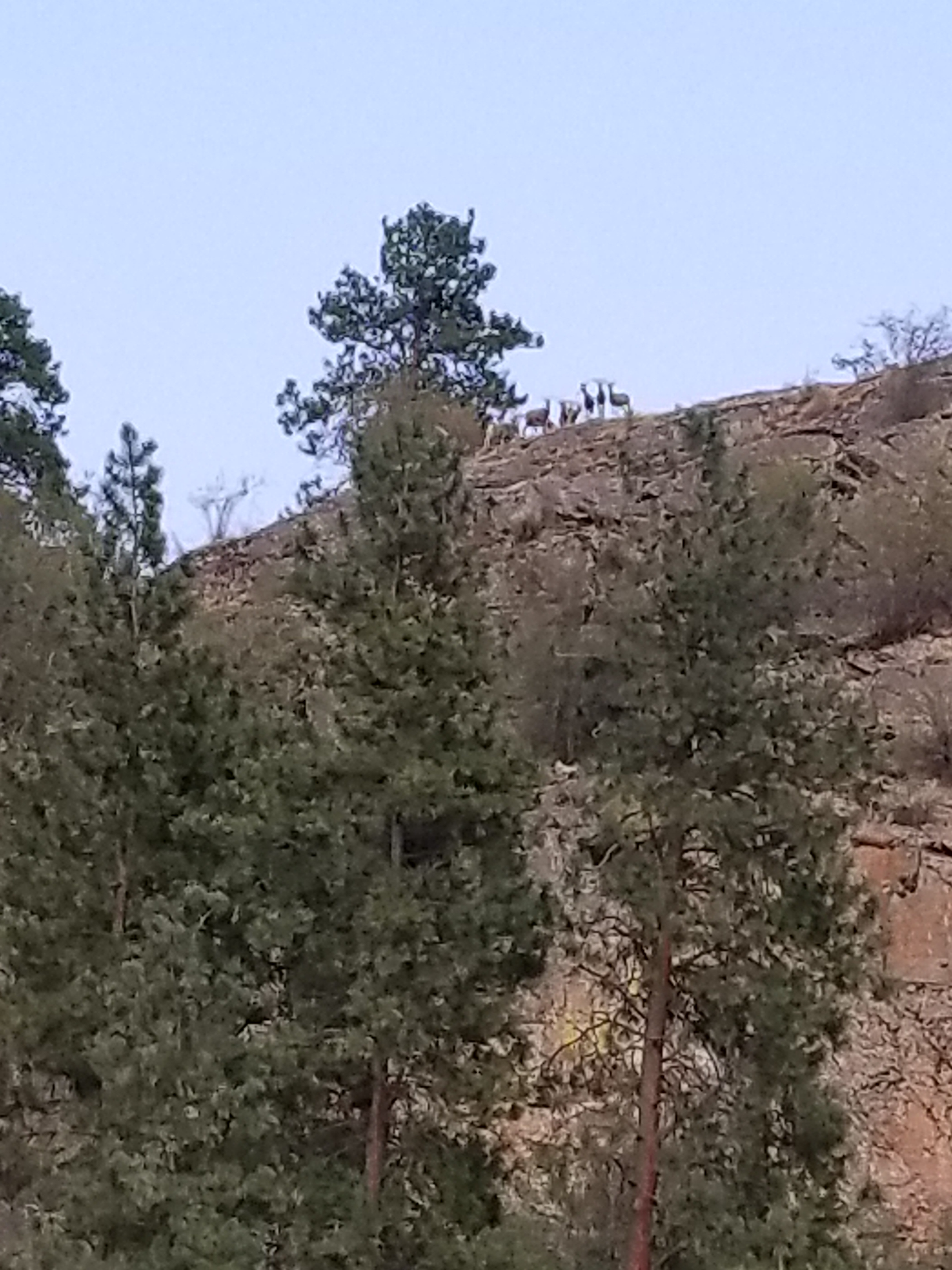 For amusement, a herd of mountain sheep went up and down the hillside in front of me. The younger ones even came down to eat. However, when the dominant Male returned, they just watched me and even when I got in my tent he would not let any of them come down.