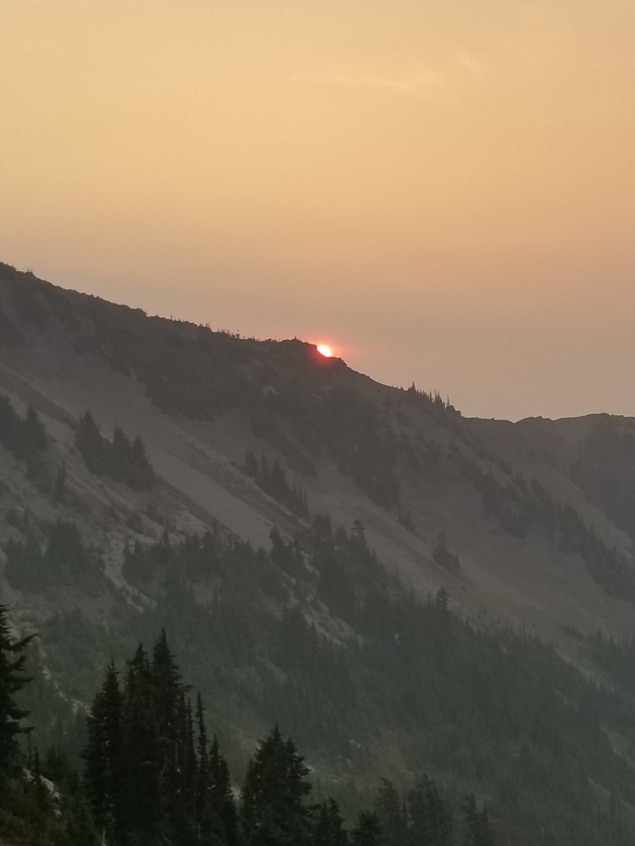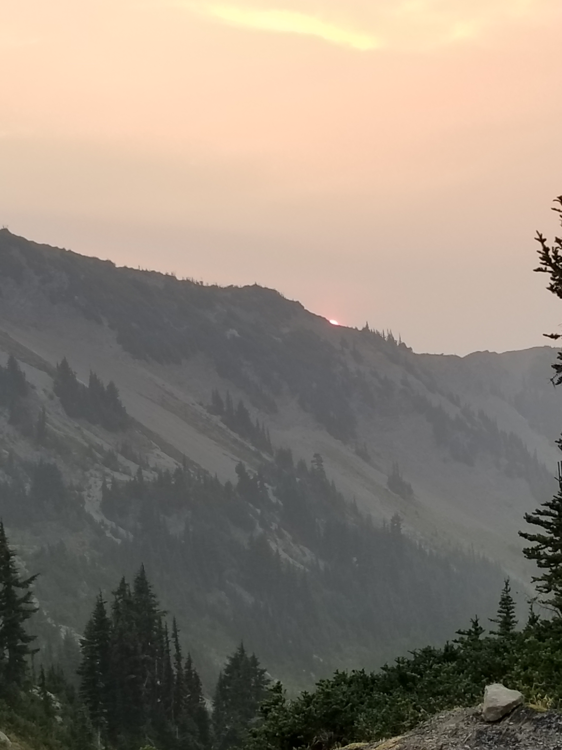 I woke up early knowing this was going to be a tough 27 mile day. I would start above treeline and end up in semi-rainforest. A gross drop in elevation from 6,700 feet above sea level to 360 feet above sea level. I took a moment to thank my knee cartilage for years of dedicated service and bid a fond farewell.